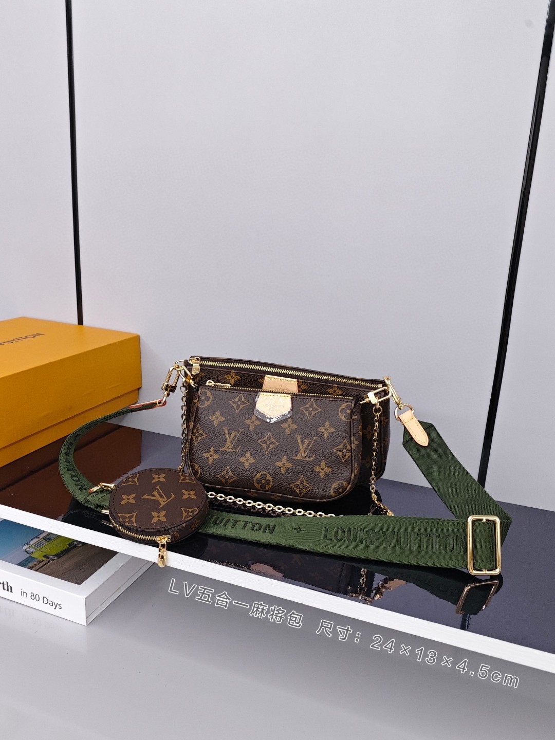 Lv五合一麻将包💰260 尺寸:24×13×4.5cm 特点:五合一可玩性高,百搭又好看。 方式:拉链式开合,空间宽裕,包体均可自由拆卸,可自由搭配,肩带可调节长短。