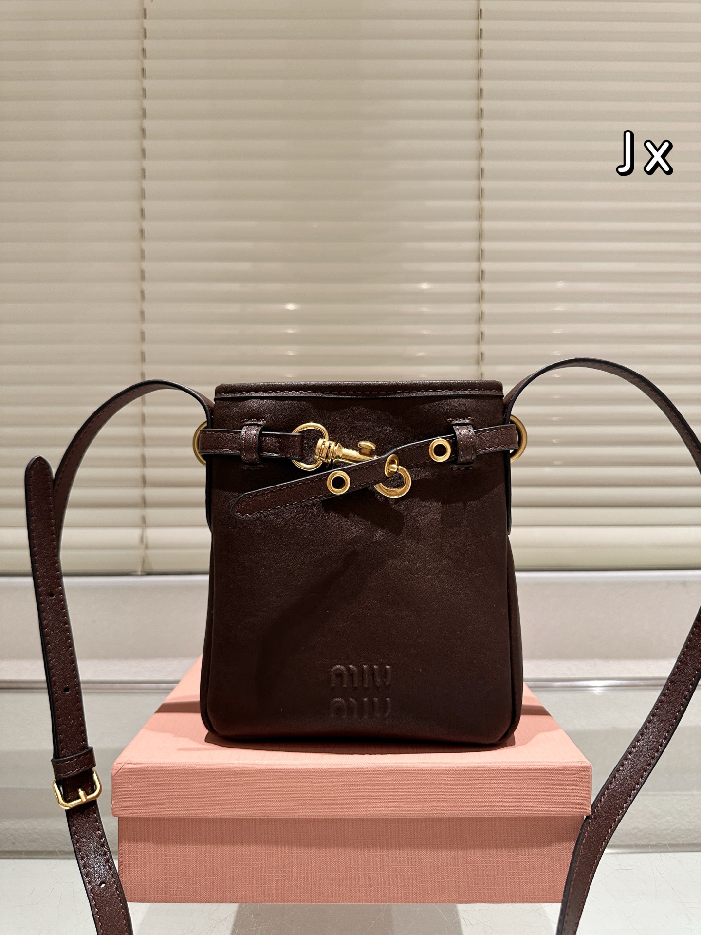 P250 miumiu新款斜挎包 Aventure 系列新款小水桶 半身轻盈好背 羊皮材质显质感 #MIUMIU