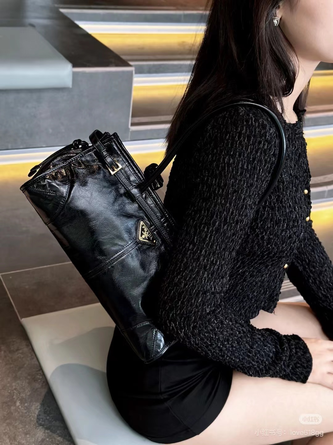 来个辣包|prada soft lux 包包巧妙的融合了复古与现代的元素 长手柄可手提可腋下 还有长肩带可斜挎 黑金油蜡皮 时髦高级有质感