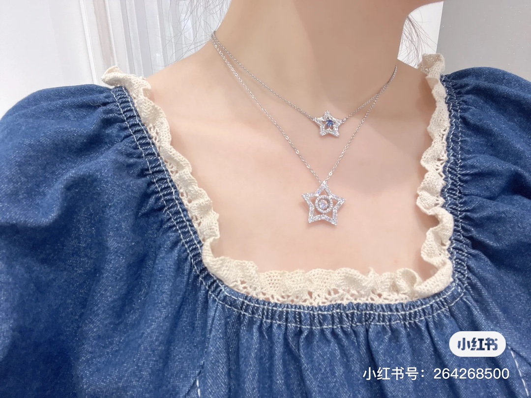 【💰】💰80 施华洛世奇STELLA“心”运星 项链 Stella项链星星项链五角星造型 白金色 可跳动情人节礼物。