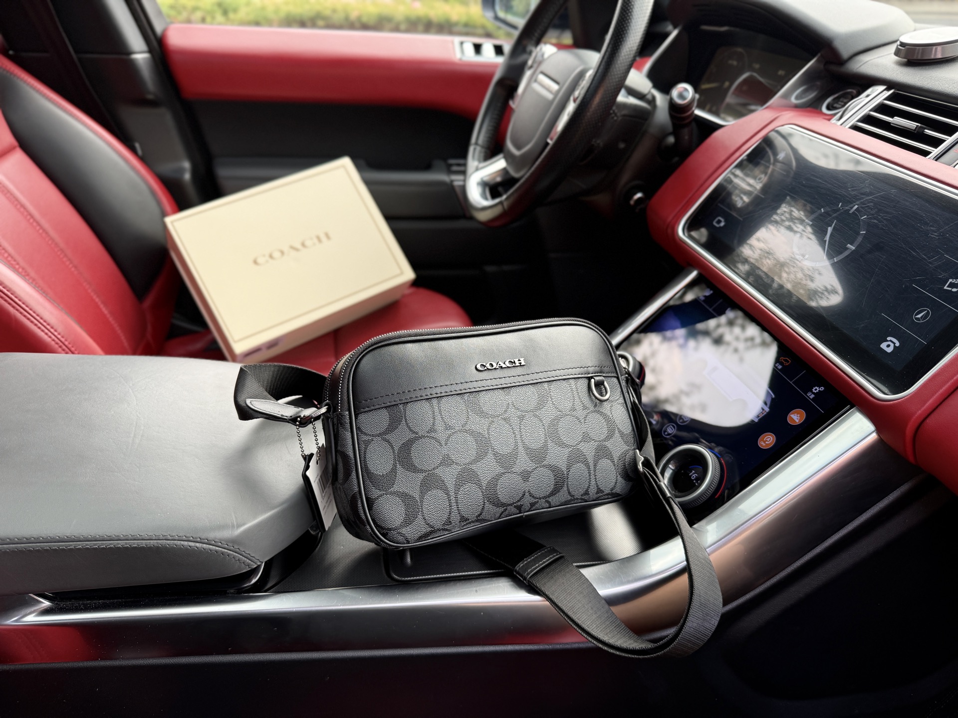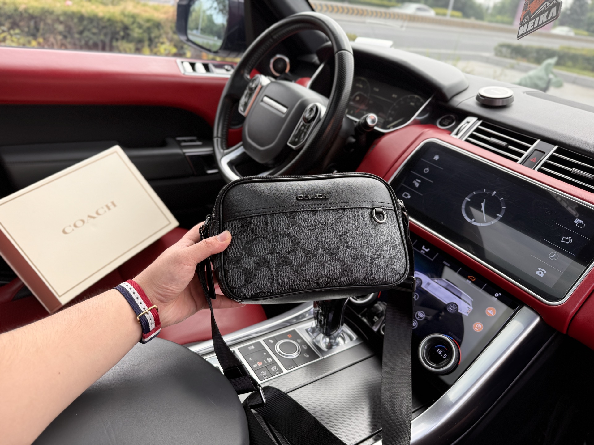 p225 📷高端货‼️ 新款 “ COACH ”蔻驰单肩包💼 coach蔻驰单肩包邮差包 COACH蔻驰 Graham 23 金属Logo标志性吊饰 涂层帆布拼小牛皮 相机包小方包单肩斜挎包 中号 男款 炭黑色 高清五金logo标志、专用里内里。顺滑拉链、边超平滑、做工精致每个细节到位!男人必备款。规格:25x16x8cm。配折叠礼盒🎁