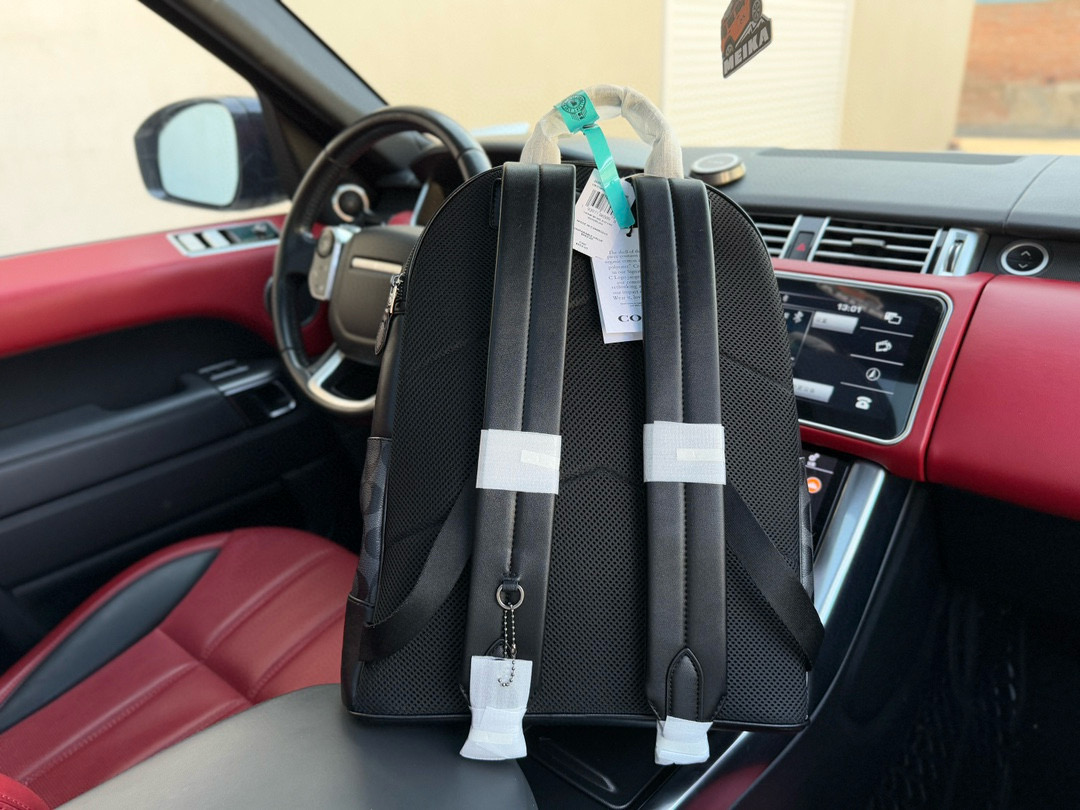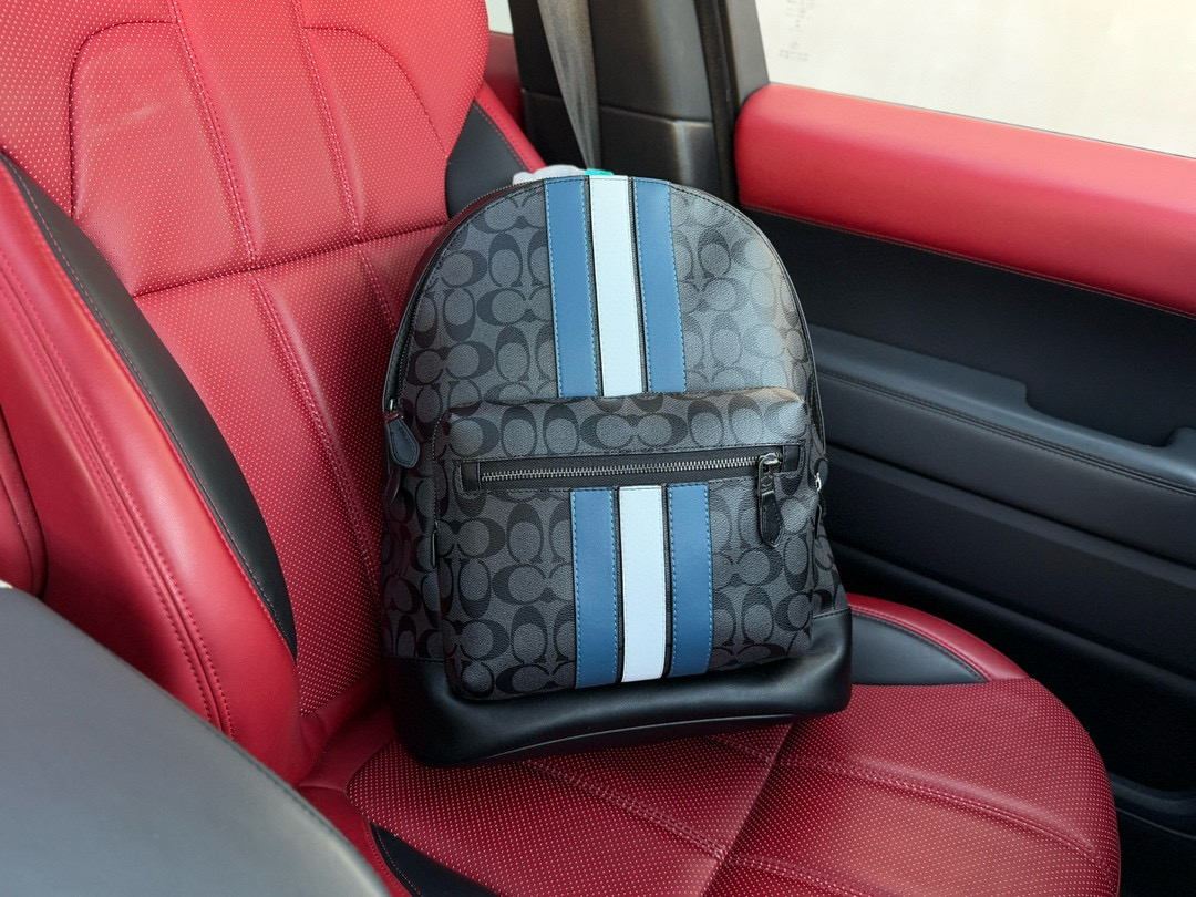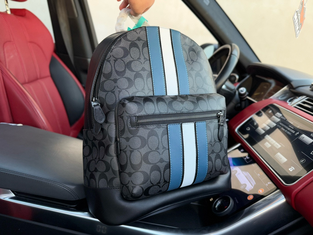 p245 📷高端货‼️ 新款 “ COACH ”蔻驰双肩包 💼 coach蔻驰升级版双肩包 COACH蔻驰 West系列 35 经典老花蓝白条纹大容量书包背包双肩包 大号 男款 黑灰色 内设电脑隔层 拉链暗袋 高清五金logo标志、专用里内里。顺滑拉链、油边平滑、做工精致每个细节到位!潮男必备款 尺寸:35x44x15cm
