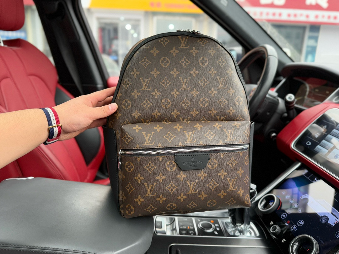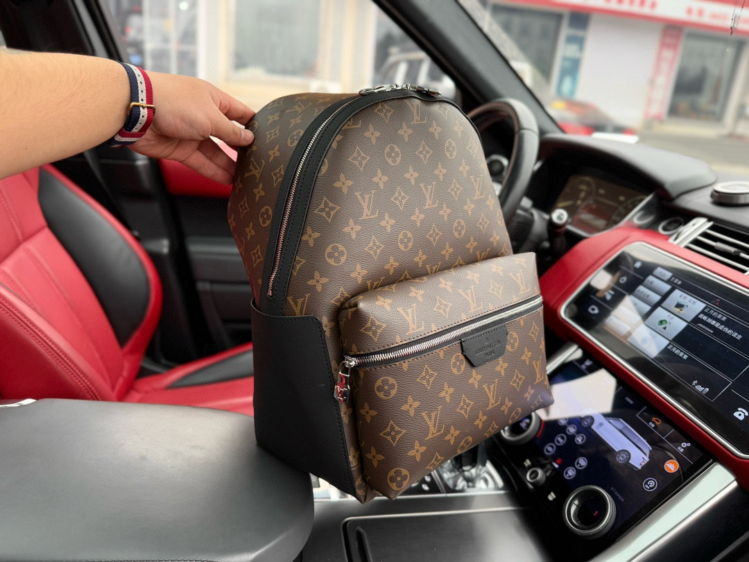 p245 升级版 📷高端货‼️ 新款 “ Louis Vuitton ”lv双肩包💼 路易威登双肩包 M46684 LOUIS VUITTON Discovery 通体老花满印拉链开合 涂层帆布拼牛皮革饰边 背包双肩包 中号 男款 棕色。高清五金logo标志、专用内里 顺滑拉链 做工精致每个细节到位! 规格:31x41x17cm