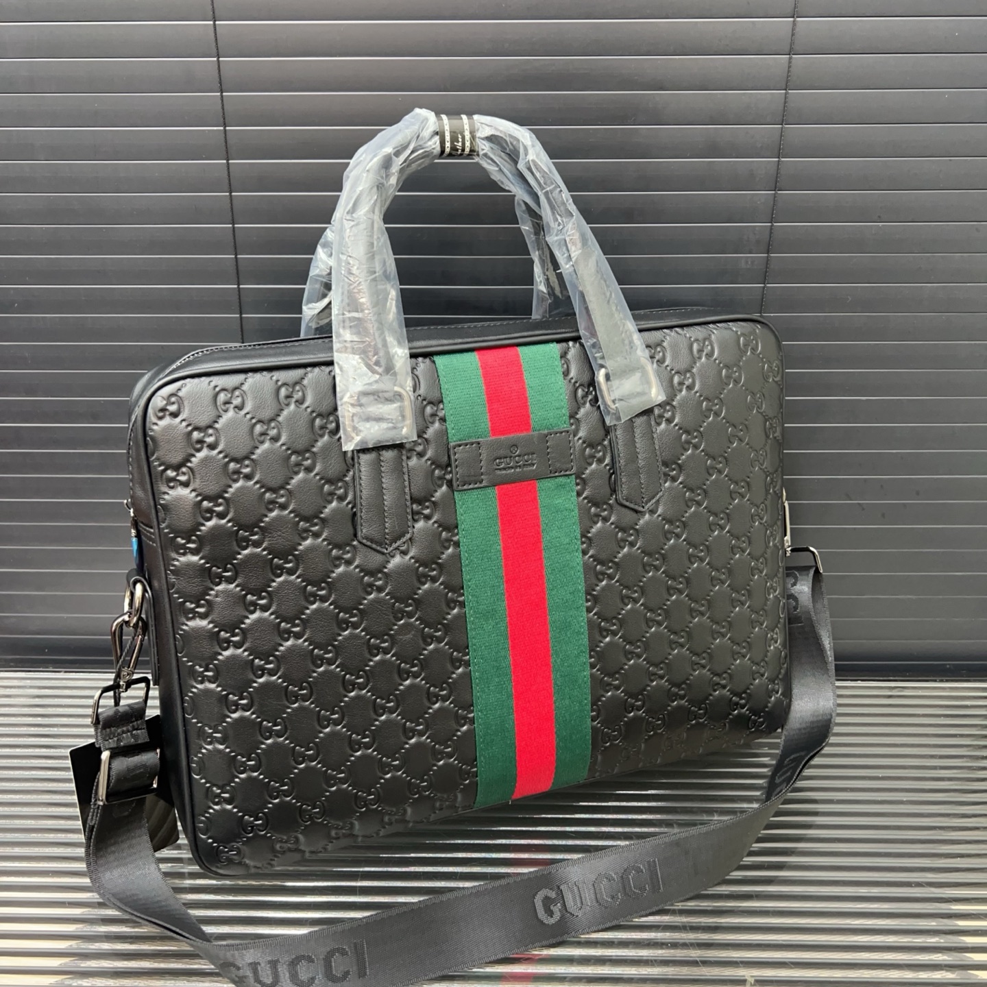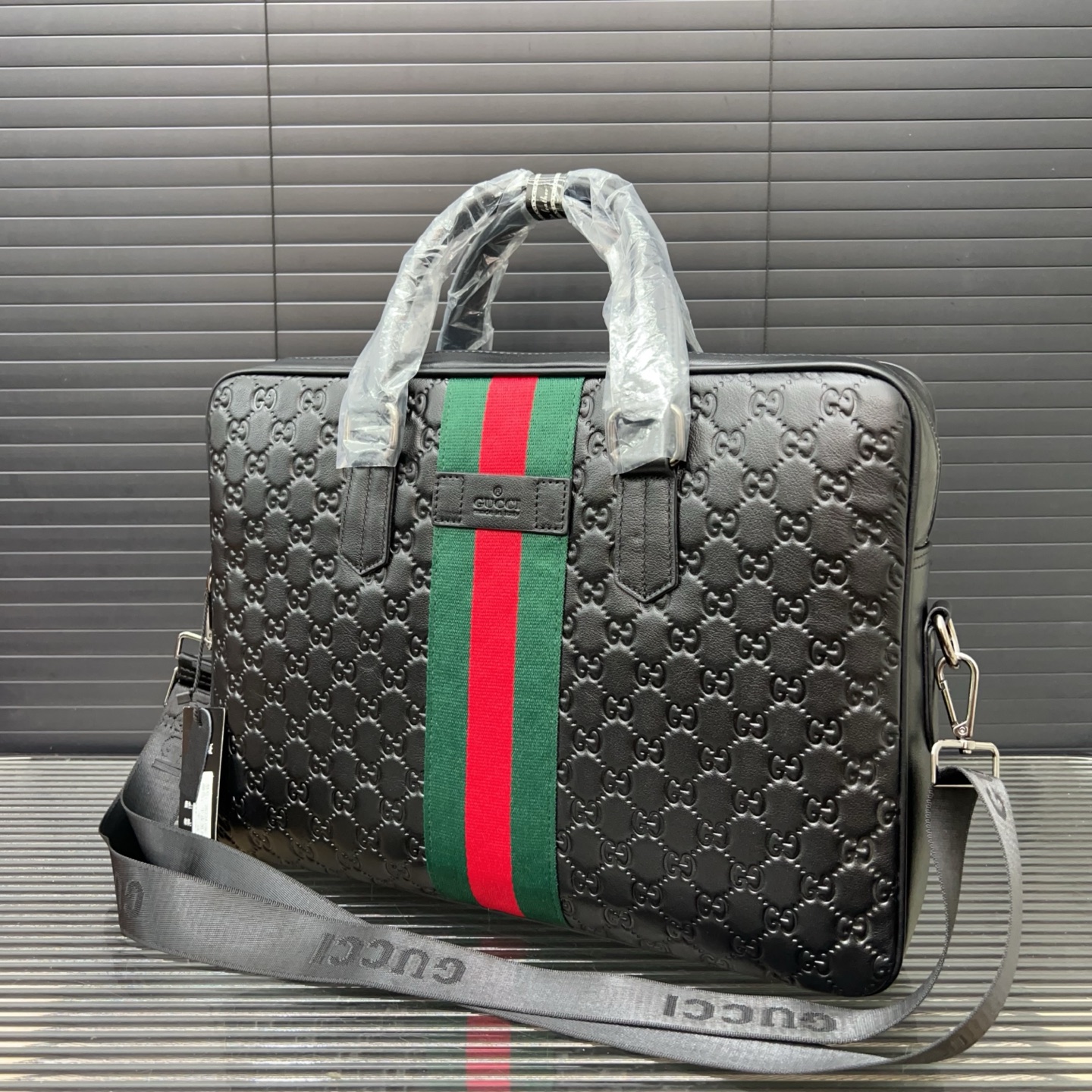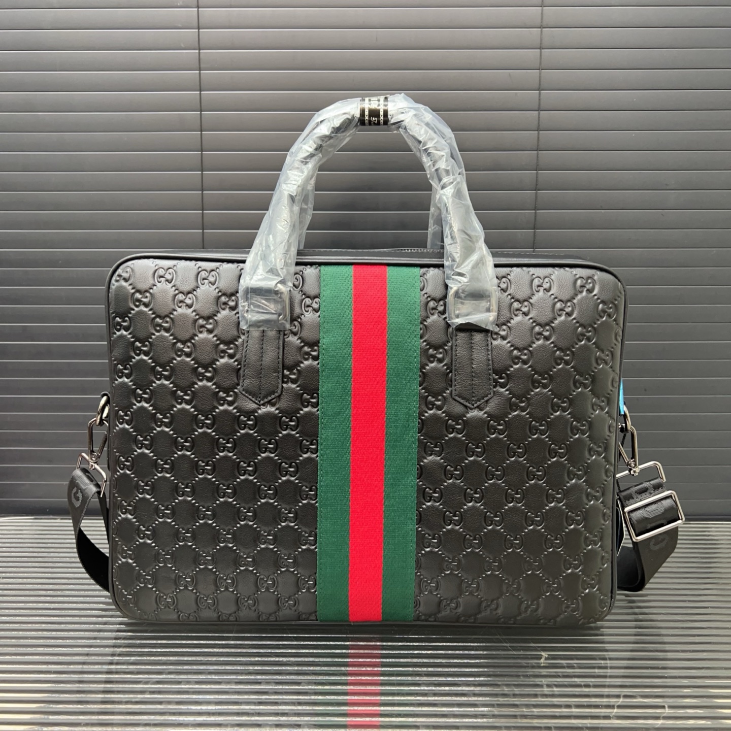 P225 Gucci 古奇 GG牛皮压花手提包 男士公文包 电脑包 经典百搭 实物拍摄 配送防尘袋 38 x 28 cm。