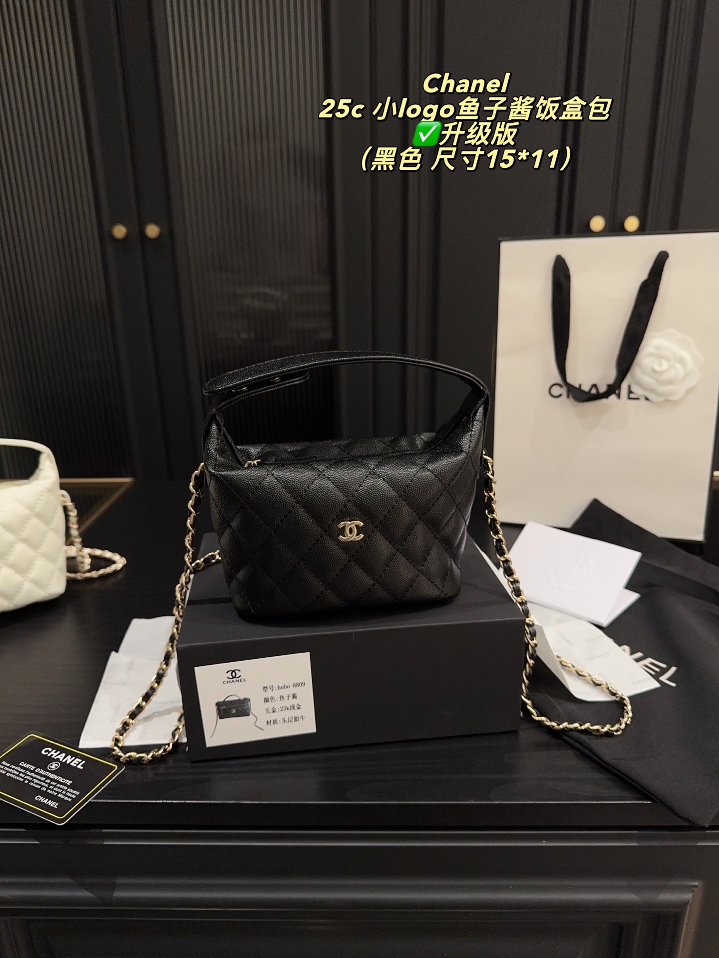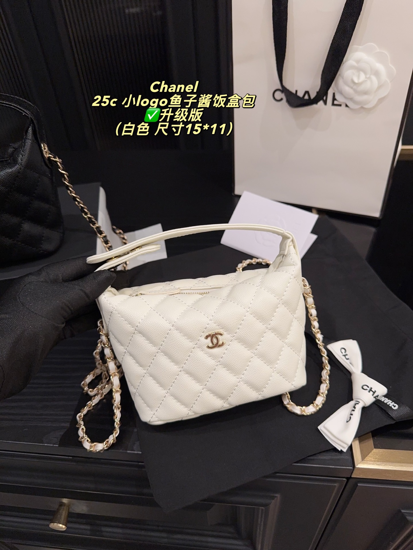 ✅升级版小logo p250全套包装⚠️尺寸15.11 香奈儿Chanel 25c小logo鱼子酱饭盒包 小香家又一个爆款 荔枝牛皮的材质 相当耐造了 这一只性价比太高了 容量相当棒 单肩斜挎手拎都可以 不过我更喜欢手提 小小一只超精致
