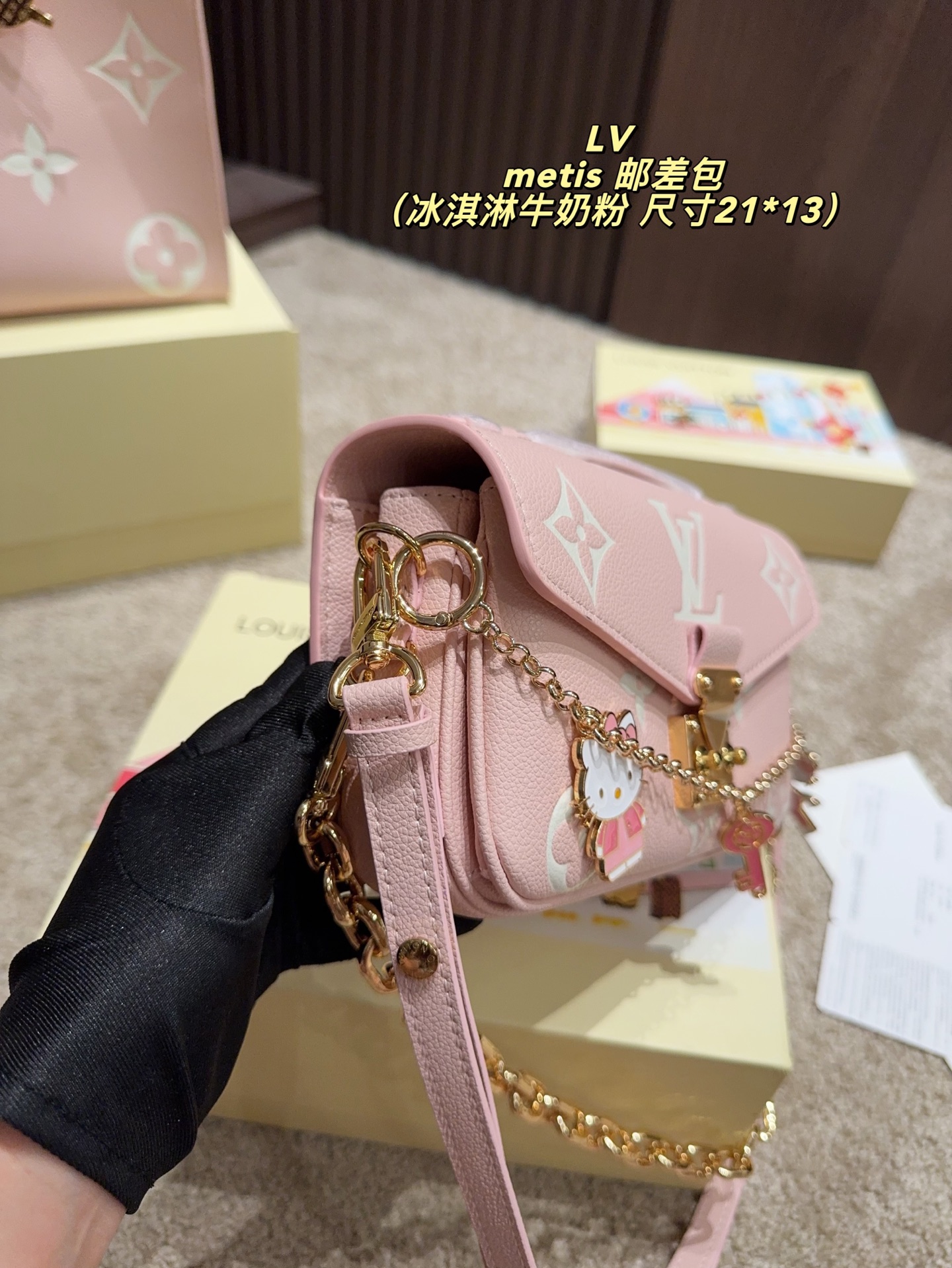 P260折叠盒➕挂件25⚠️尺寸21*13 Lv metis邮差包 Pochere Meris East Wiest 手袋取材 新品冰淇淋牛奶粉 好适合春天呐!搭配hello Kitty链条太可爱啦, Monogram Empreinte 压纹皮革,展现品牌风街与摩里元素融合。传统S-iock 锁扣和可拆卸短链条闪耀金属光泽,精巧构型囊括括齐整內里,可调节肩带方便都市畅行。