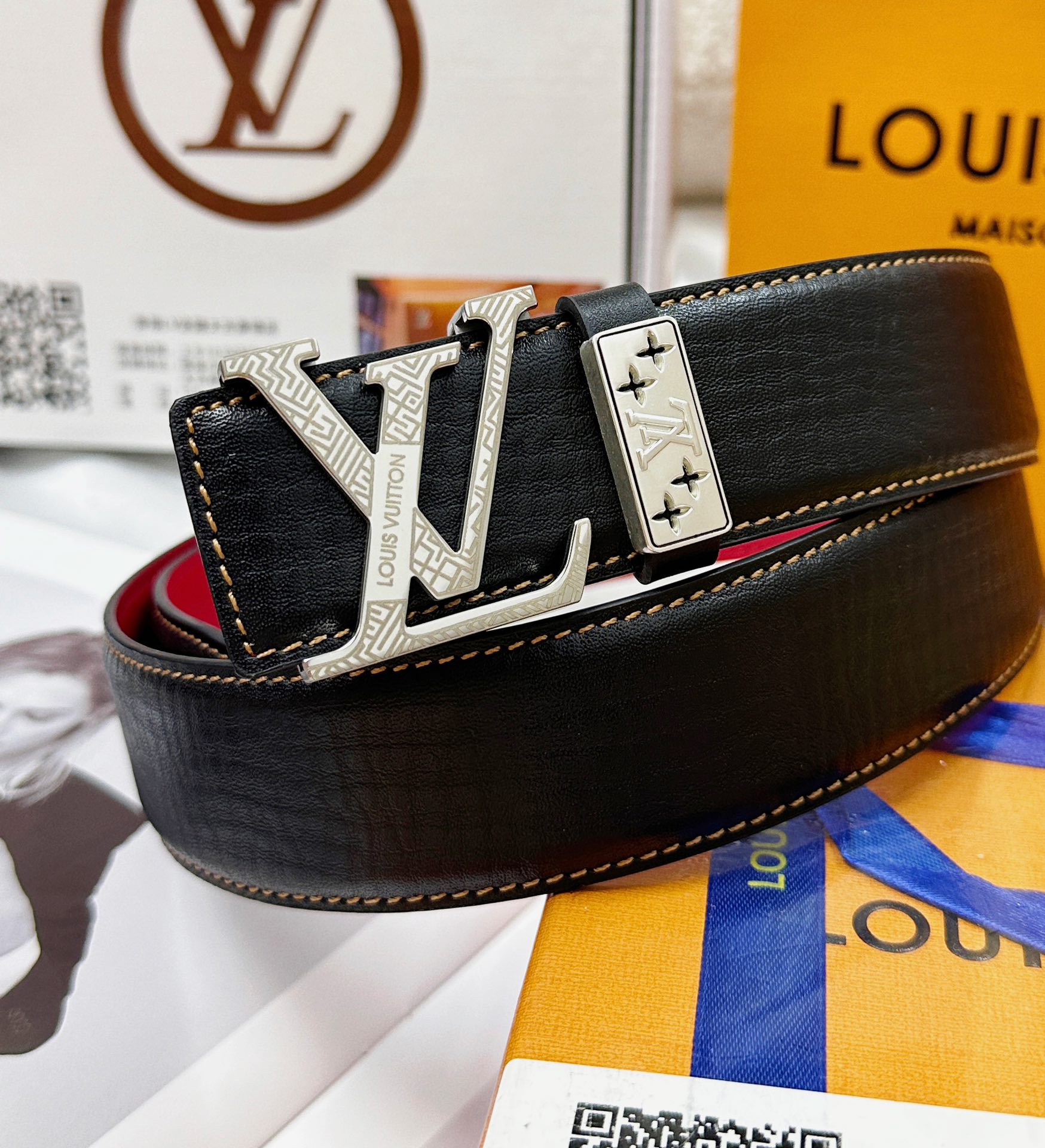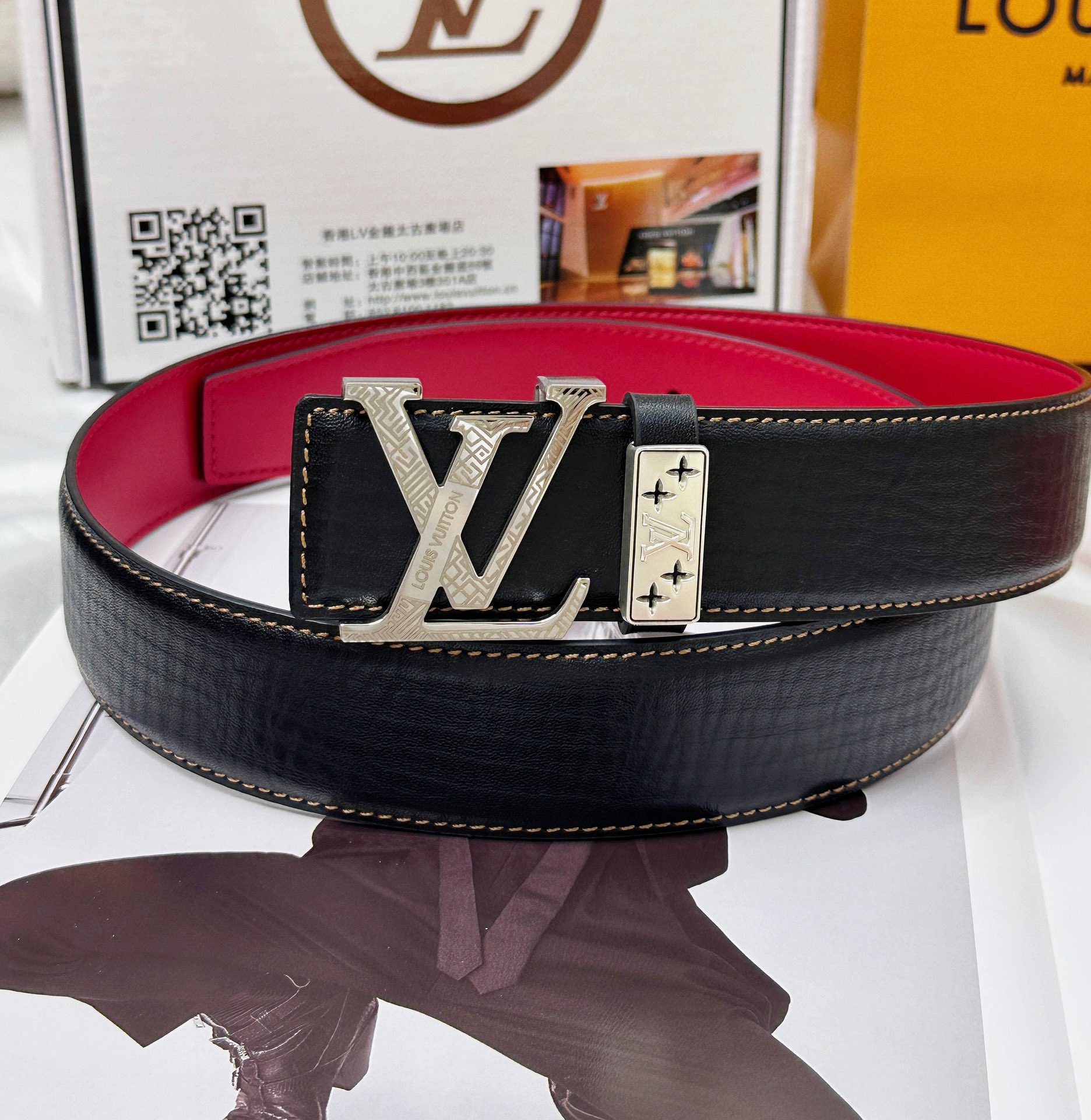 💯皮带:LV..路易..威登️✈️顶级复刻.P180.00 💯腰带:原单品质🐂百分百头层牛皮,保证真皮。雕花镂空🌟工艺.真空电镀.永不掉色.24K纯钢扣🌈头层小牛皮荔枝纹🎨双面两用✨专柜同等质量, 送人自用首选✈️ 💯包装: 请认准如图专柜包装,赠送打孔器,银联发票,宽度3.8mm
