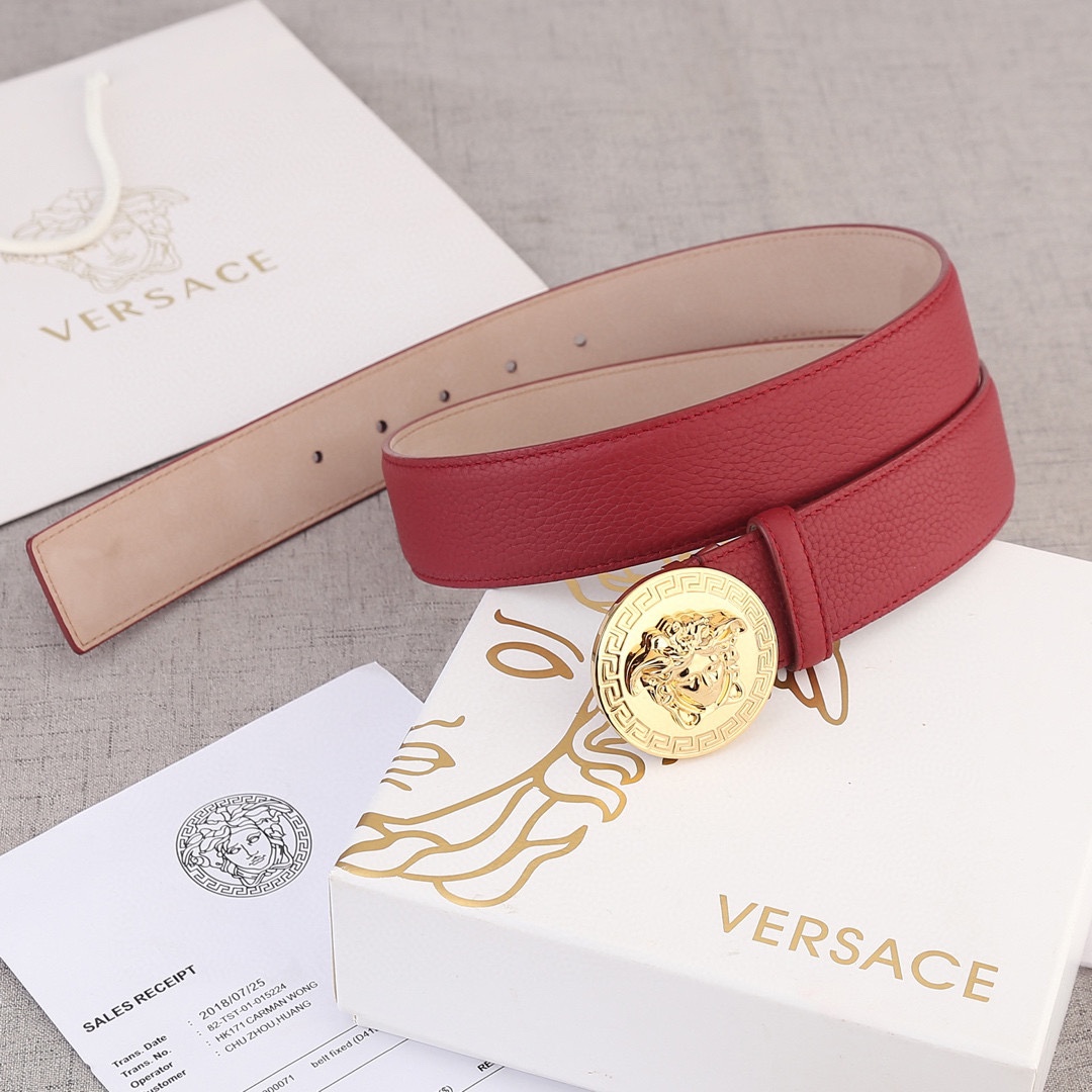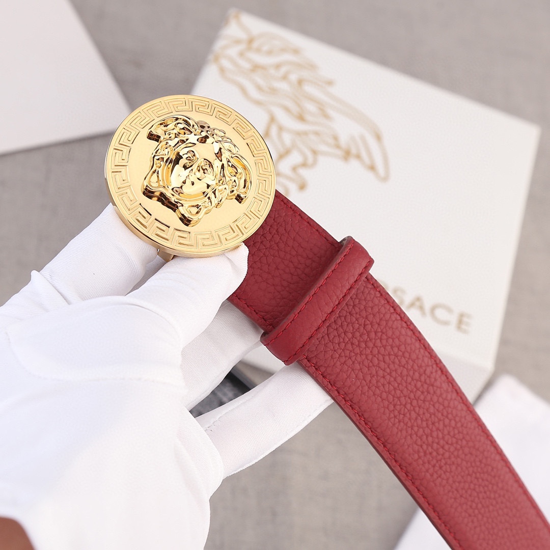 P180.00 宽度4.0cm (范思哲) 此款腰带饰有标志性的Versace美杜莎头像扣,彰显品牌格调。是一款精美的衣橱必备单品。