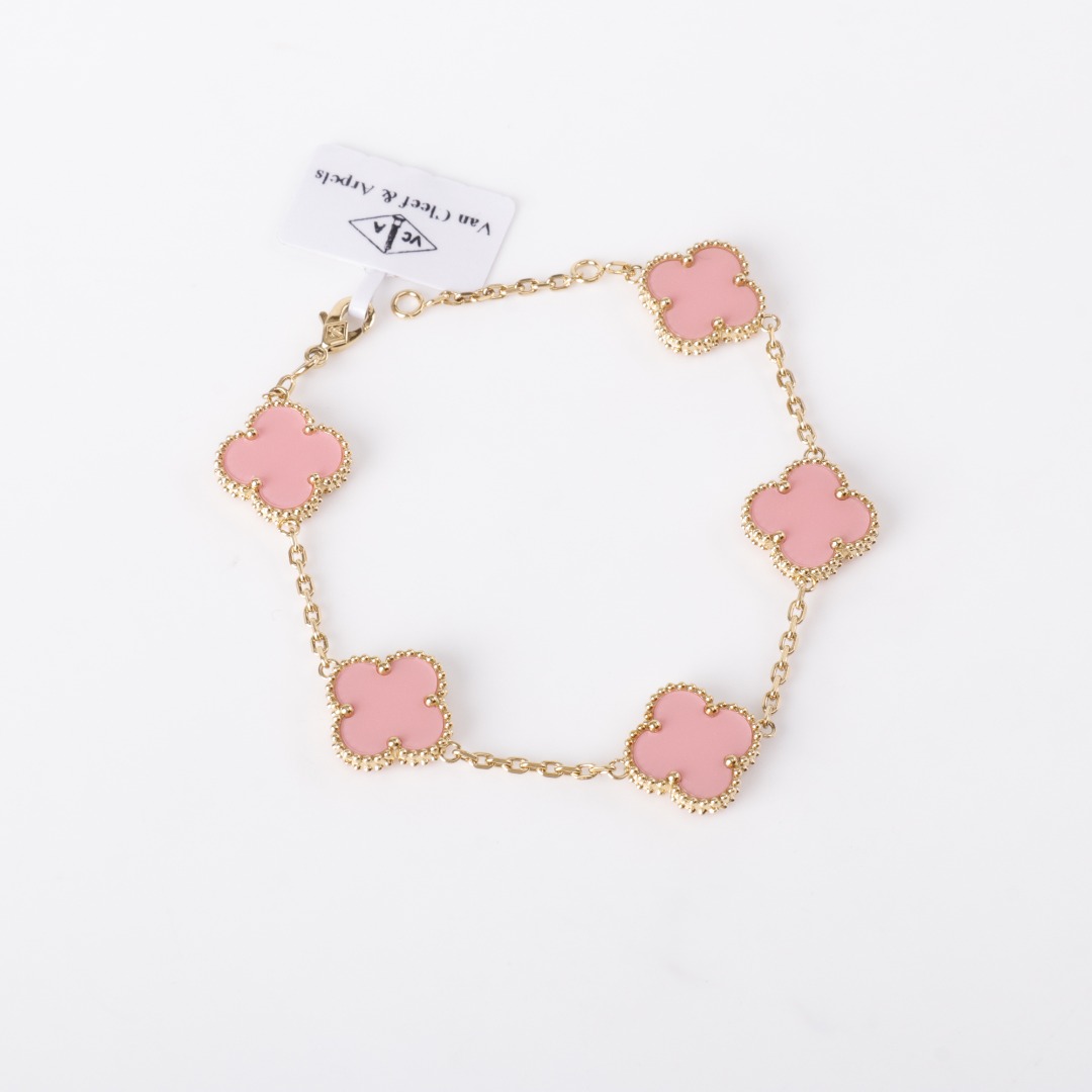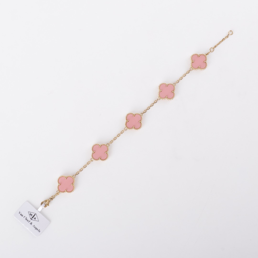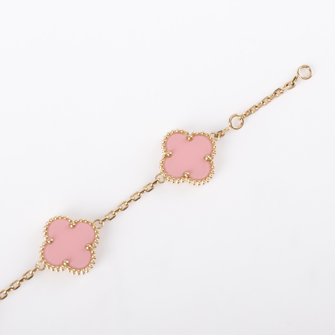 Van Cleef Arpels梵克雅宝VCA 经典四叶草手链 樱花粉 附全套包装,包装损坏扣除20元,谢谢谅解 Size:18cm左右可调节
