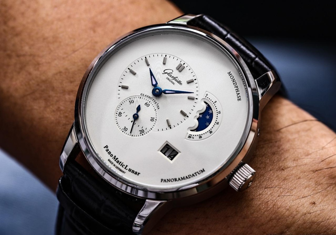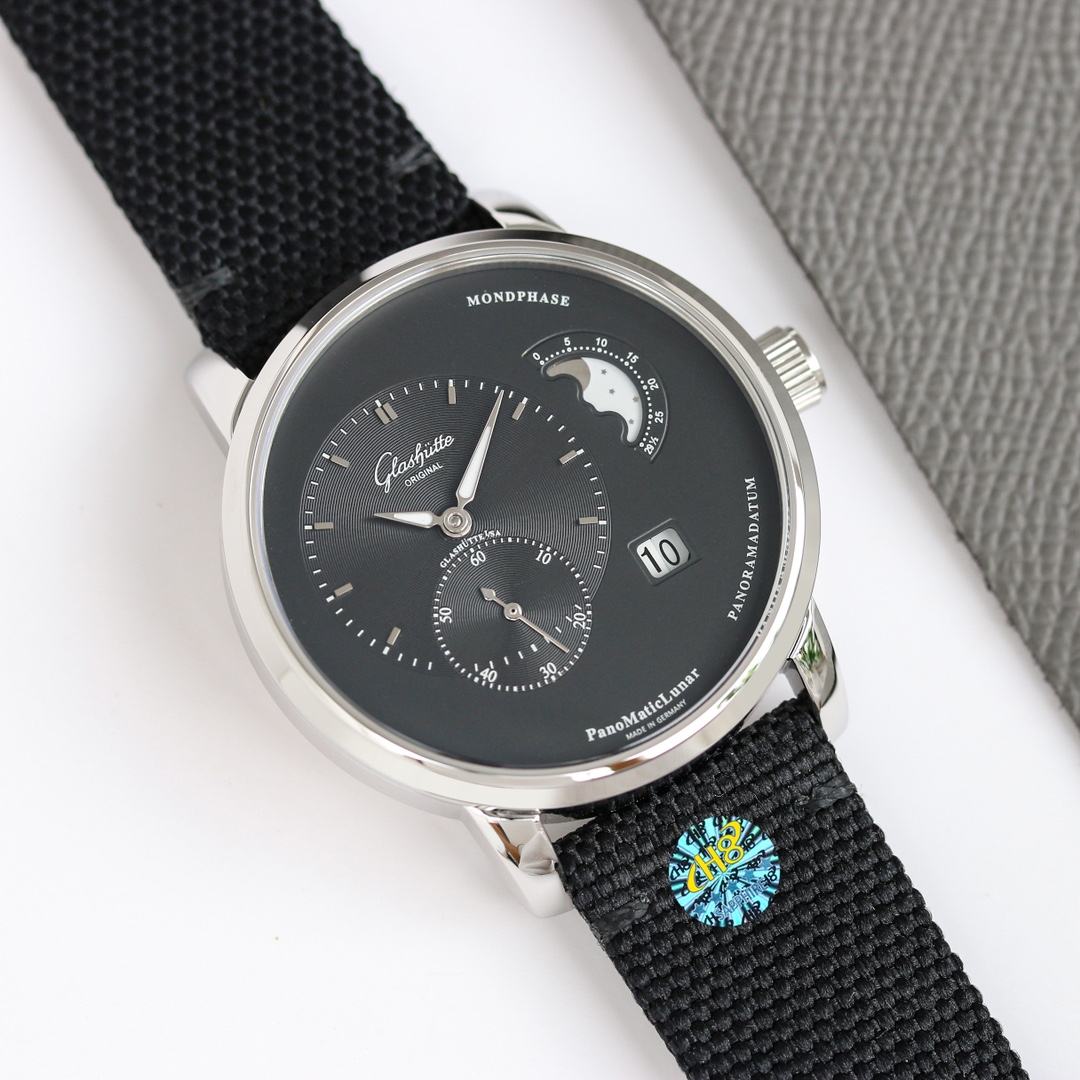 白壳1600,玫壳1650 格拉苏蒂原创偏心系列1-90-02款腕表,购置原装历时3年开模打造,完美的还原Cal.90-02四分之三德式机芯,双跳大日历精彩呈现,3/4机芯打磨精美无比,2点位置日相正常运行,尺寸40mm,淬火烧蓝钢指针。表盘的布局遵循黄金分割比例,小时/分钟刻度盘和小秒针表盘依然位于表盘偏左位置,圆心垂直对齐,大日期和精湛的月相显示分别在其下方和右上方。镀铑银色小时刻度位于蓝钢时针、分针和秒针之下,独特的大日期显示,月相显示盘中银色的月亮和星辰嵌在深蓝的夜空中,使该款腕表更加完美。腕表采用3/4夹板设计,3/4 夹板的作用是承载走时轮系, 在组装过程中,必须同时对准多个心轴的位置,唯有坚定的双手、小心谨慎与大量的时间心血才能完成。 比起以数个桥板构成的传统结构,3/4 夹板大大改善了机芯的稳定性。 此外,3/4 夹板不仅降低齿轮的轴距公差,也让机芯更抗污。 手腕上的BBA,您值得拥有。