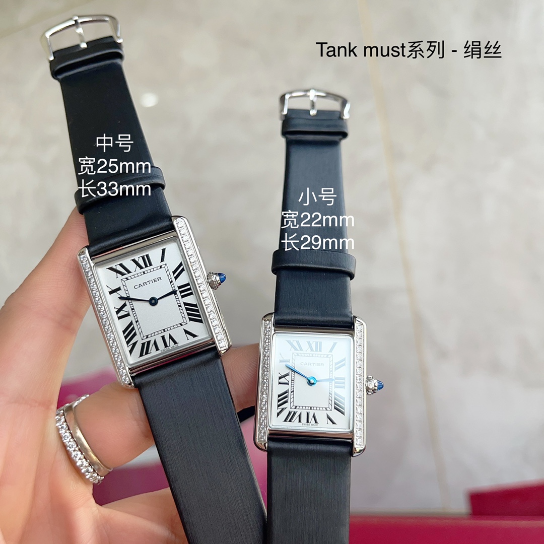 卡地亚Tank must系列 进口瑞士石英机芯,316L精钢表壳,316L精钢表链采用螺丝旋转式固定,整身任意位置都可拆卸,与原版一致,磨砂乳白表盘,蓝宝石水晶镜面,蓝宝石尖晶石表冠,舒软高定小羊皮表带搭配针扣式表扣 尺寸: 小号:宽22mm长29.5mm厚6.5mm 中号:宽25.5mm长33.7mm厚6.5mm