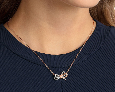 520礼物 💰80 🎈施华洛🎈施华洛世奇LIFELONG BOW 双色蝴蝶结造型时尚优雅女项链送女友 浪漫蝴蝶结,为颈间增添柔情魅力。
