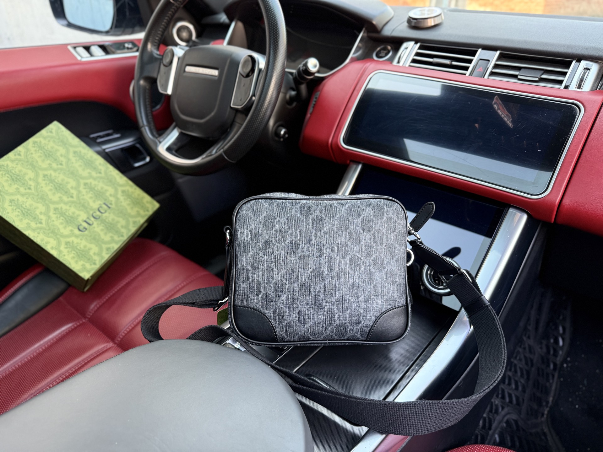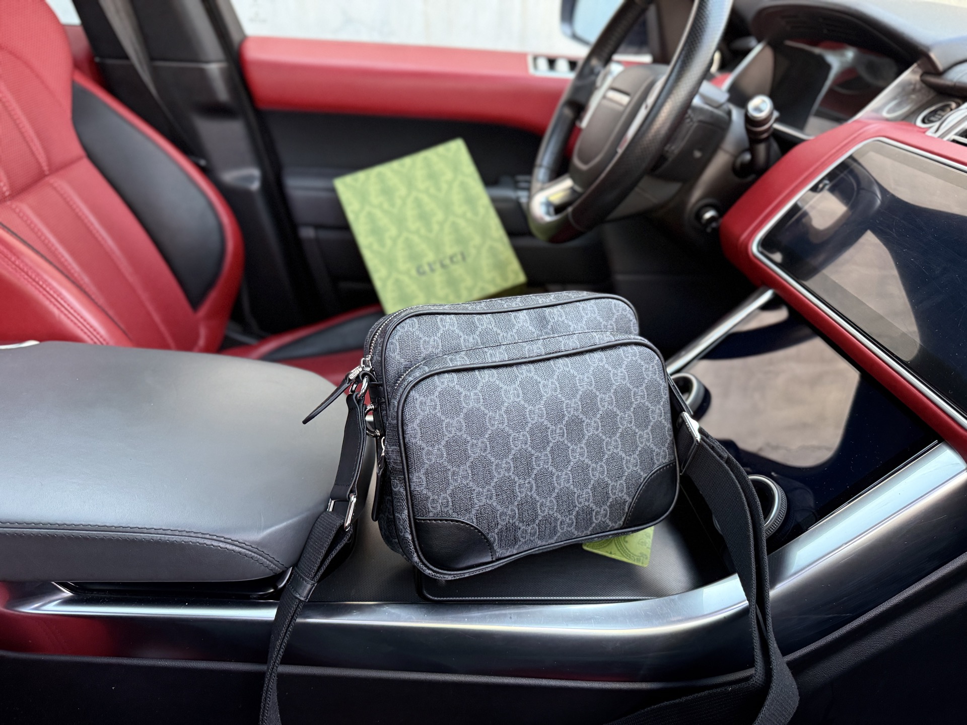 p205 📷高端货‼️ 新款 “ GUCCI ”古奇单肩包💼 GUCCI古驰邮差包 GUCCI古驰 GG Emblem 标志品牌印花拉链开合 涂层面料 单肩斜挎包 中号 男款 黑色 高清五金logo标志、内里隔层!专用内里。顺滑拉链、做工精致每个细节到位!男人必备款。规格:23x16.5x8cm 配折叠礼盒🎁