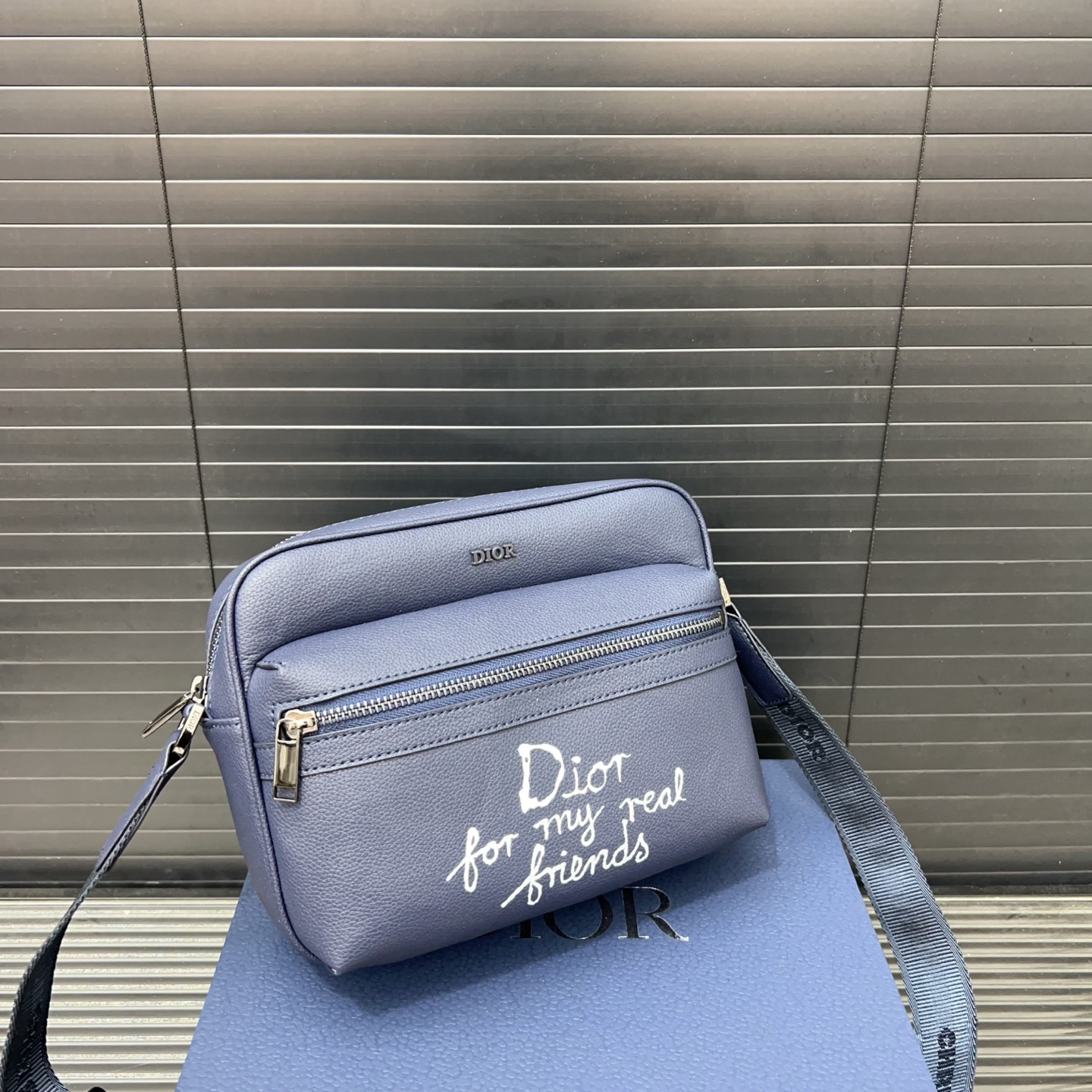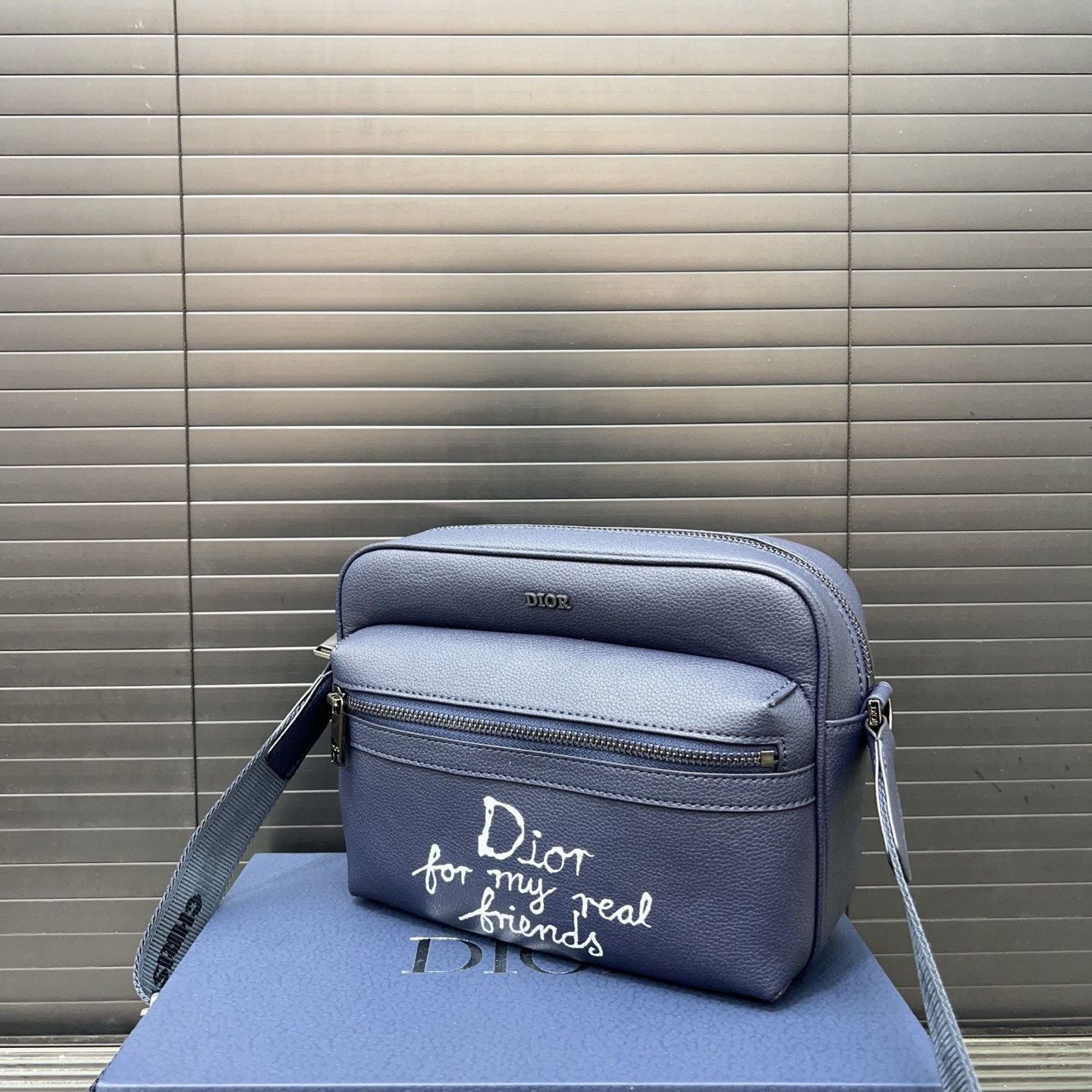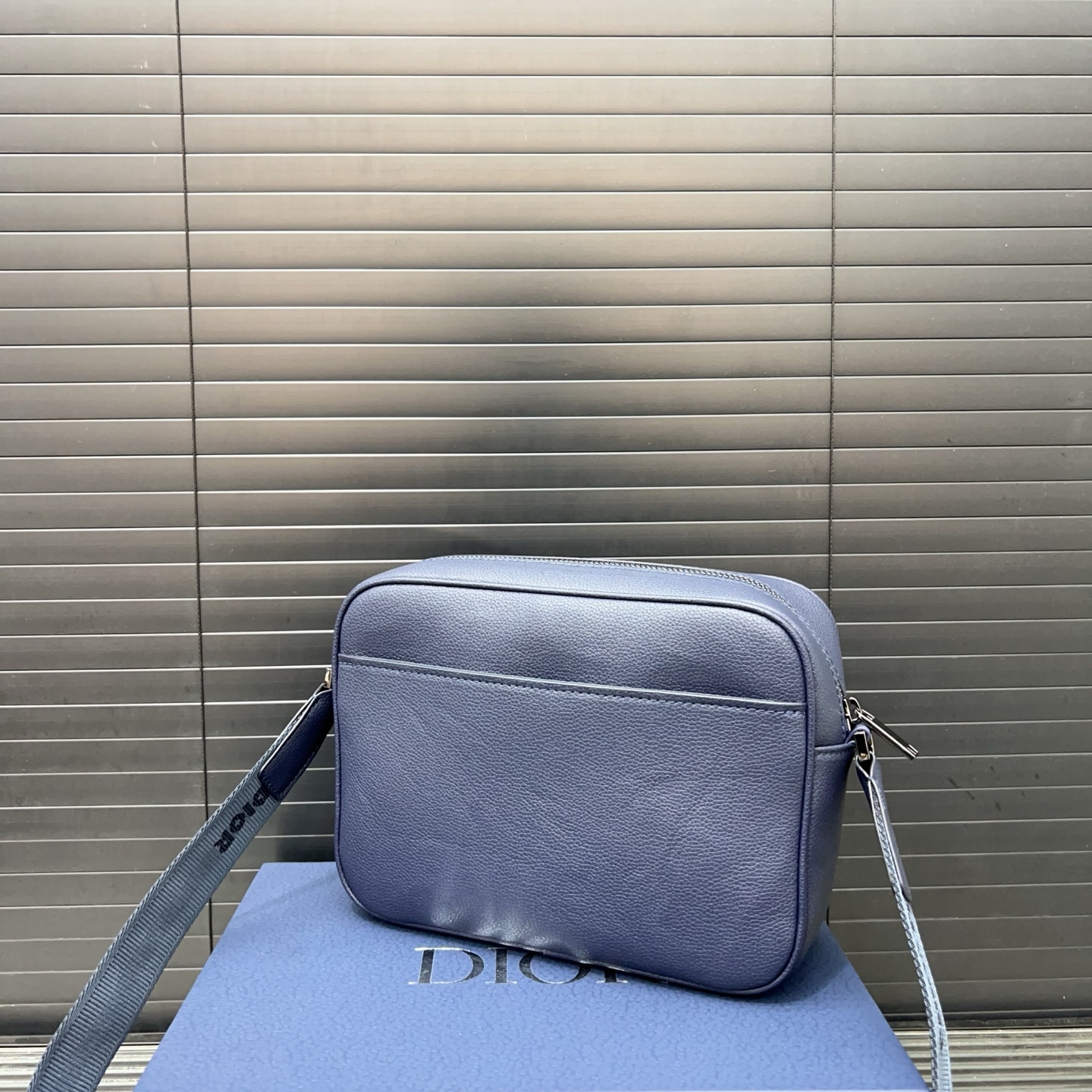 P240 DIOR 迪奥 AND HYLTON NEL Rider 2.0 拉链开合 粒面牛皮革 单肩包 邮差包 海军蓝 经典百搭 实物拍摄 原厂原版面料 配送防尘袋 24 x 17 cm。