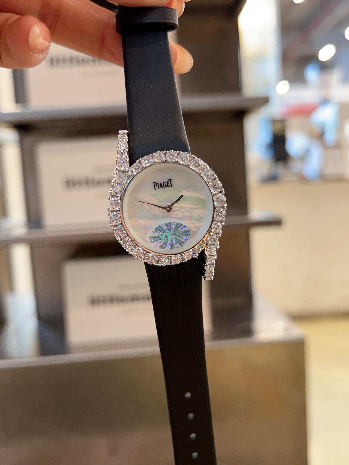 💰350伯爵全新Limelight Gala系列!该款接近原装,每颗钻都很大颗,很饱满,真正的珠宝镶,物美价廉,超越市场货! 走颜值路线的伯爵女表,公然表示,伯爵最好看的女表就是Limelight Gala。它的流线型设计带出了女人妩媚感,而且,非常有辨识型,属于“第一眼伯爵” 腕表以迷人的不对称曲线及精湛的宝石镶嵌工艺,杰出设计及珠宝完美融为一体!全新作品嵌入直径更大的华丽美钻,莹白臻美的珍珠贝表盘。 尺寸:32mm:原装进口石英机芯, 凸显钻石的熠熠华彩,诠释隽永不凡的经典设计🍀🍀🍀