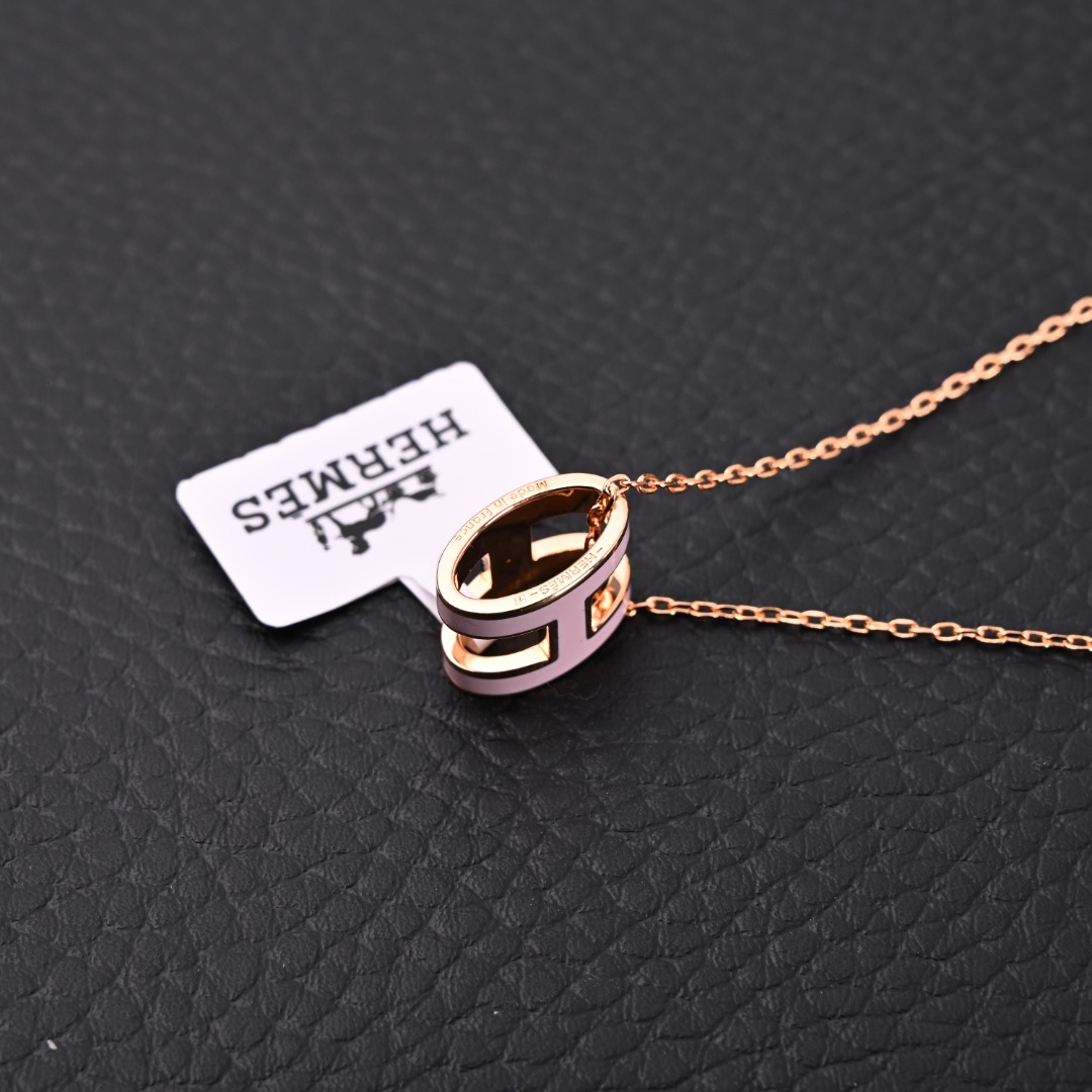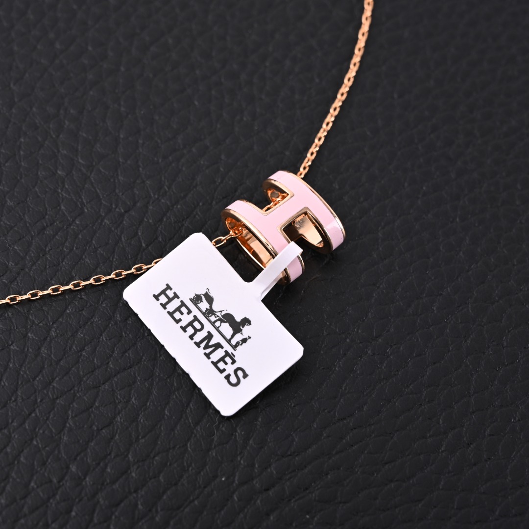 HERMES爱玛仕 “H”珐琅项链 浅粉 #纯银镀18K金高版本 采用进口珐琅彩工艺, 主吊坠由黄铜打造,配合18K金涂层,全套正品专柜礼盒包装 #退换包装损坏扣20元。