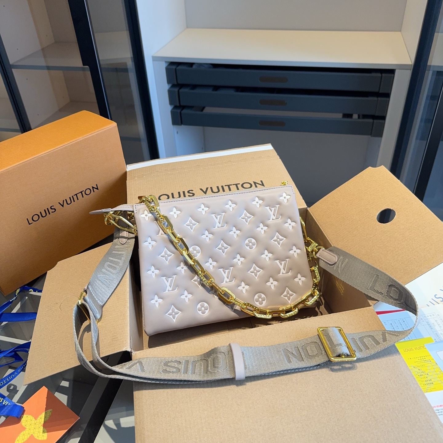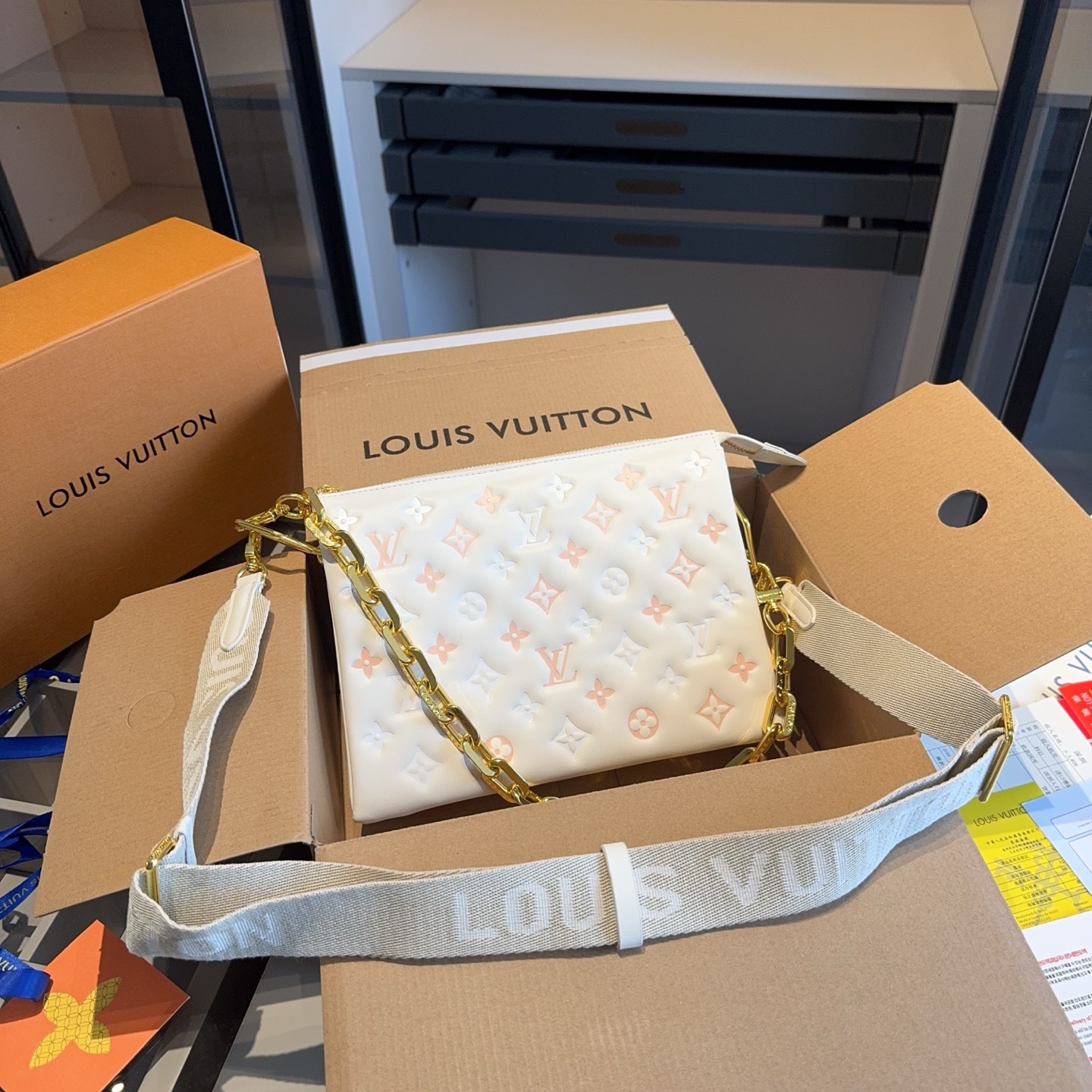 🅿️260✅牛皮系列🔜 高端货🔥全套包装‼️9色🔥LV专柜经典印花Coussin手袋👍网红爆款!众多明星追捧的单品哦 原版压花牛皮🐂顶级原版复刻五金 简洁大气!上身效果超棒!原单品质 配链条和彩带~超高回头率!✈️原版飞机盒🎁原版折叠礼盒包装(size:27*20)