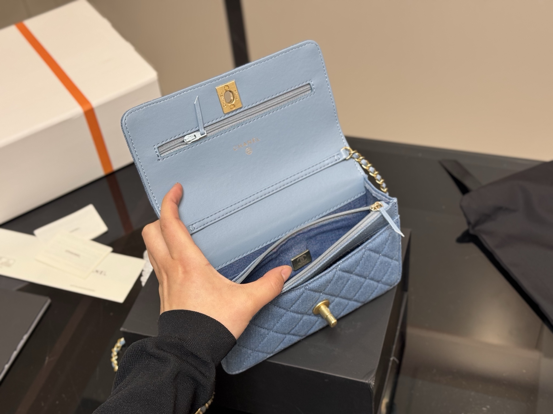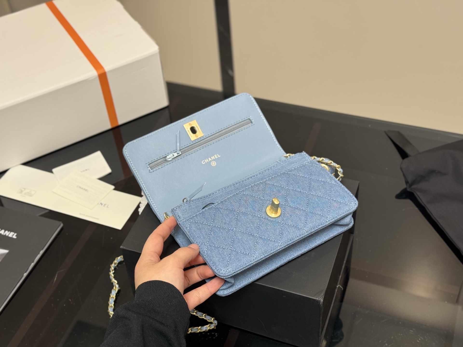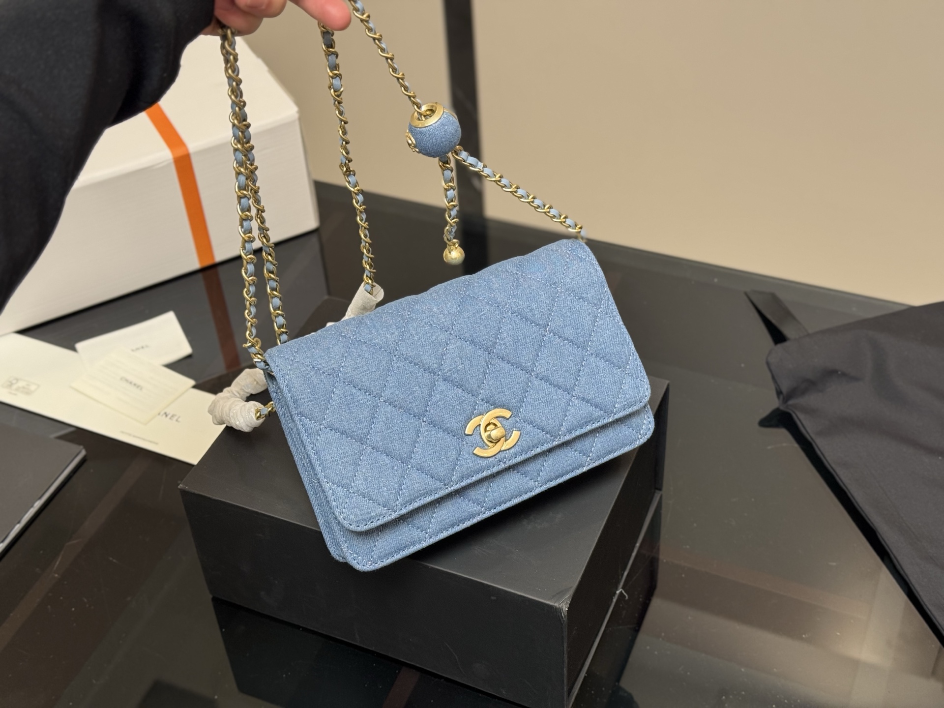 ¥210 配盒 size :19*12cm 香奈儿新款金球发财包 woc 品质很不错! 包包有卡位 有暗袋!很实用!