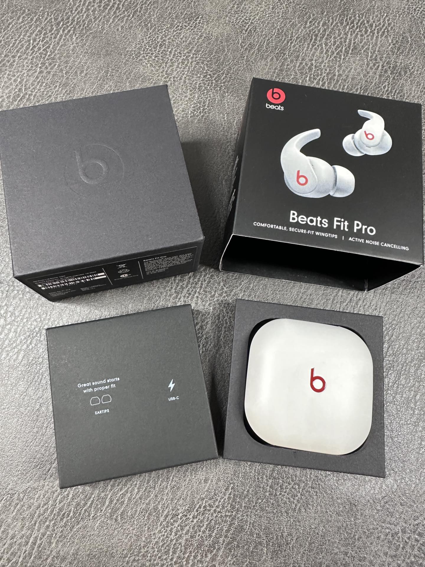 全新出货‼️放店💰150 正确版Beats Fit Pro‼蓝牙耳机️ 带弹窗 市面唯一正确版本 原装盒子包装❗️ 颜色:白色 台湾进口芯片 1.75石墨钛喇叭 音质非常好💯 立体凹版雕刻魔音logo 带弹窗 区别市面错误版油漆图标 按压式切换模式‼️指哪打哪的按键回馈感 续航最长听歌可达8小时 搭配充电仓可达一天 Type-C充电口 可快速充电 充电5分钟听歌1小时 5.0蓝牙 安卓/苹果都能用 市面手机基本都匹配 提供三种尺寸胶塞 给你最佳的佩戴舒适感受❗️ 包装清单 耳机 充电线 替换耳塞 说明书 B字贴纸等 退换要求 外观不磨损支持退换 售后保修三个月❗️