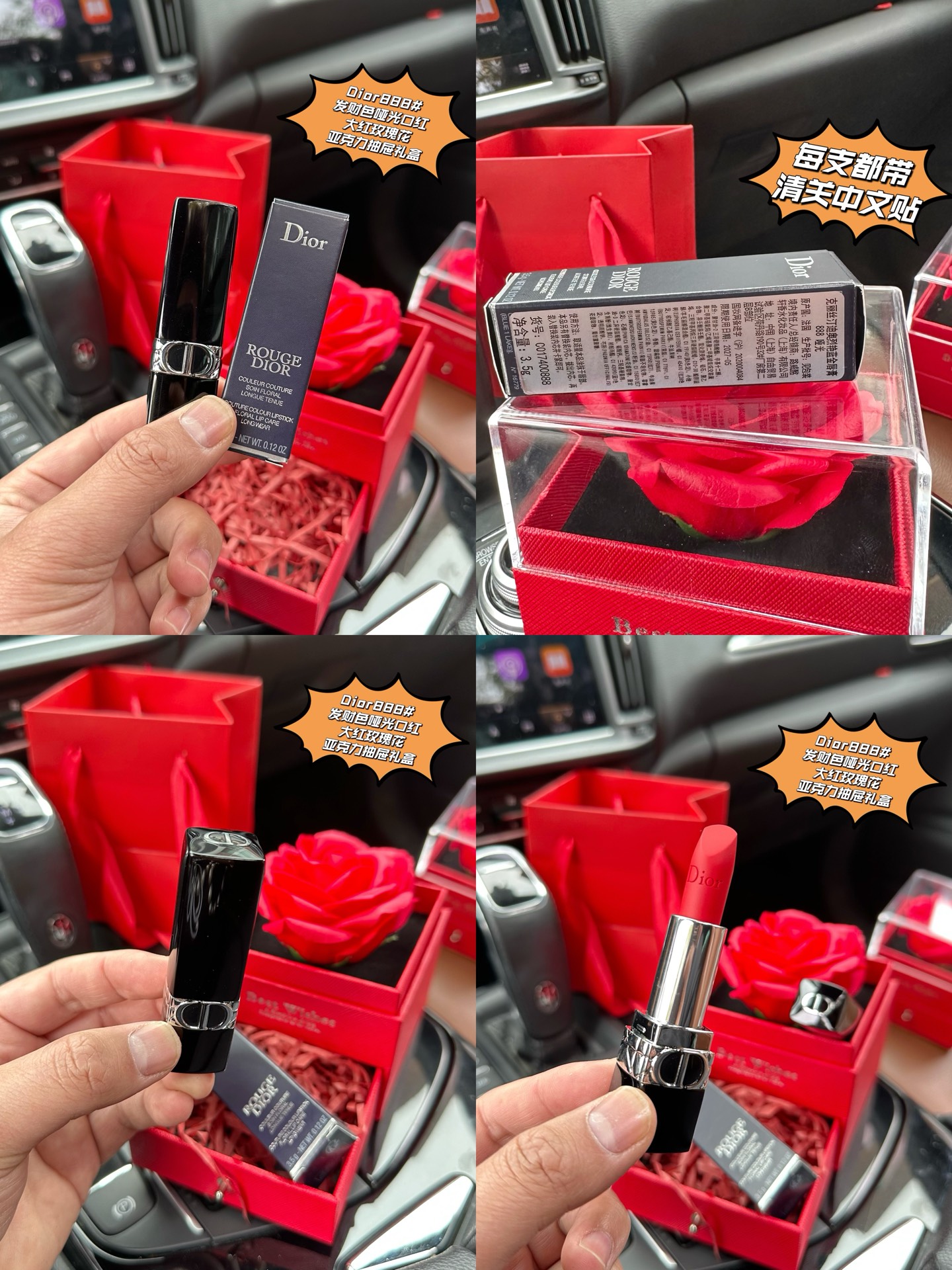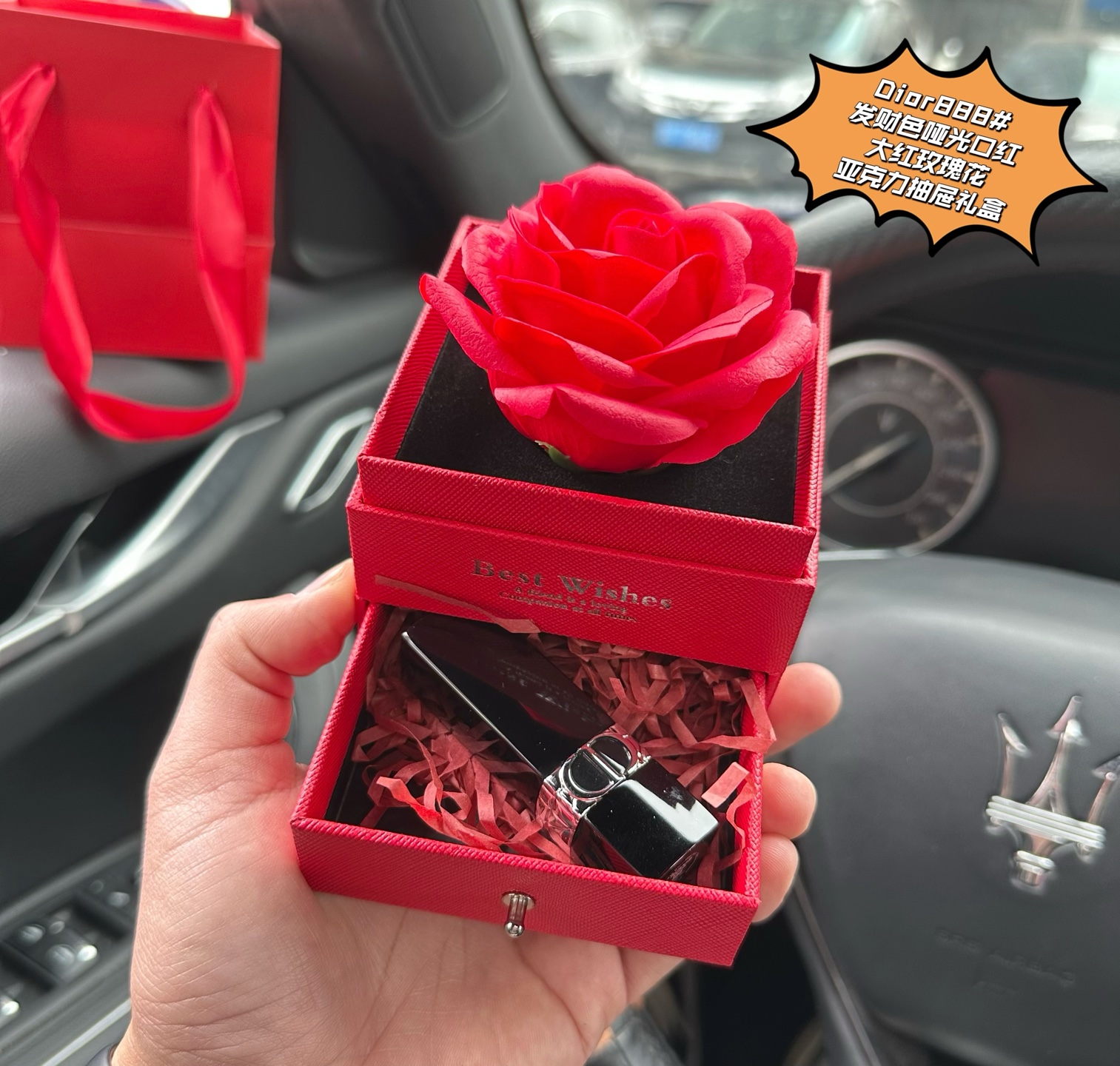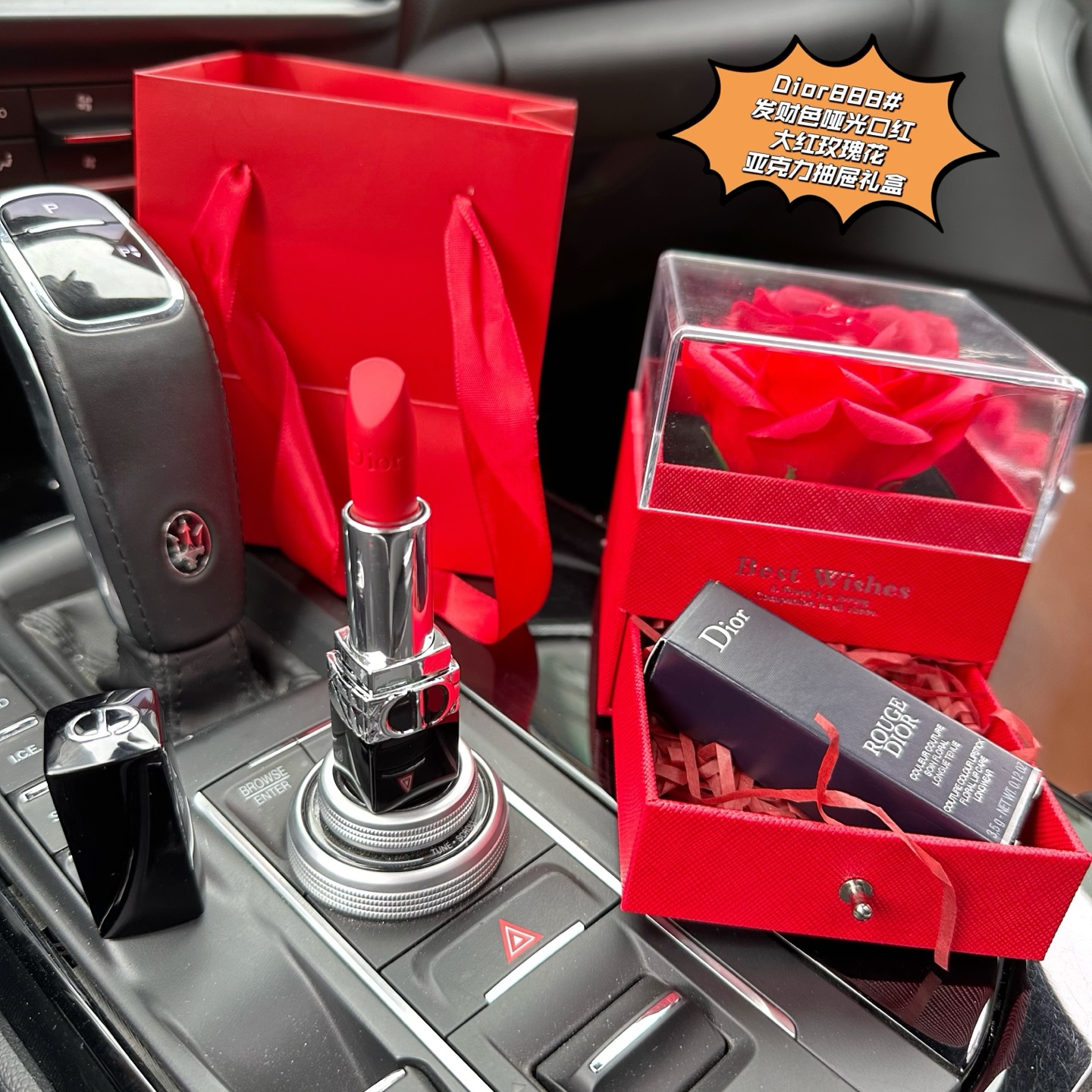 (3.8女王节浮力)P90#玫瑰花+口红+限定礼盒,这样的礼物哪个女人能抗拒?送点讨喜的节日礼物不容易喔#【Di0r迪澳888#发财色哑光口红大红玫瑰花亚克力抽屉礼盒】 玫瑰+口红这个搭配真的是绝了,送女人绝D不会出错!炒鸡高颜值的礼盒!剁手都要抢!优雅浪漫的法式风范!女生心动的礼物!生活中总有不期而至的美好,爱与我同在,永不凋谢的大红永生玫瑰花+一支Di0r888#发财色正装口红,就问哪个女人不爱?兄弟姐妹萌抓紧抢,就一批十来盒,抢到就是赚到! 这次的包装设计真心完美踩中大众审美点!真的是太会了,有颜有内涵!妹子们值得拥有,冲!从今天起,做个完整女人,走上开挂的人生!女人没有口红是不完整的!强烈给大家种草一波!888#发财色太讨喜了,不仅好看还招财!限量版!每支都带清关中文贴,细节真的绝了!真的贼好看!发财色,这个寓意还超级好啊,发发发,比999偏橘色一点!送谁谁都爱!真的炒鸡浪漫! 红唇一笑,世界生色!气质显白,丝绒哑光质地,柔滑惊艳!薄涂调重色,厚涂霸气!配上爱不释手的玫瑰花盒真的太浪漫了!太想要了!有颜又有内涵的礼盒,送人自留都是非常完美的!闭眼抢!