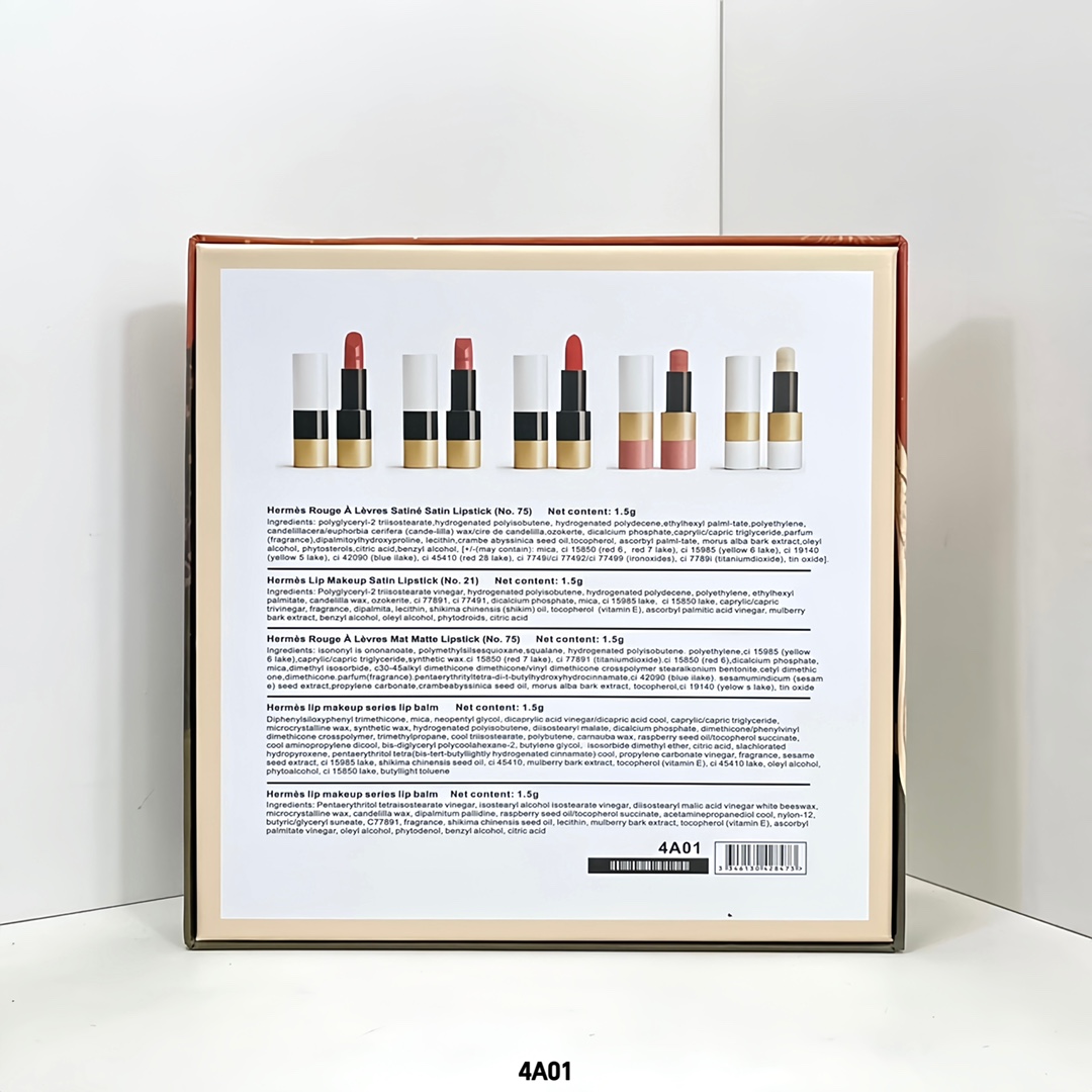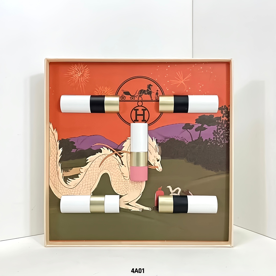90包💪 ( 爱马仕龙马精神口红小样五件套 ) 4A01编码!配礼袋✔1.5g*5 缎光21# 75# 粉红瑰丽49# 无色润唇膏# 限量款哑光75#(备注:2024年龙年最新色号)