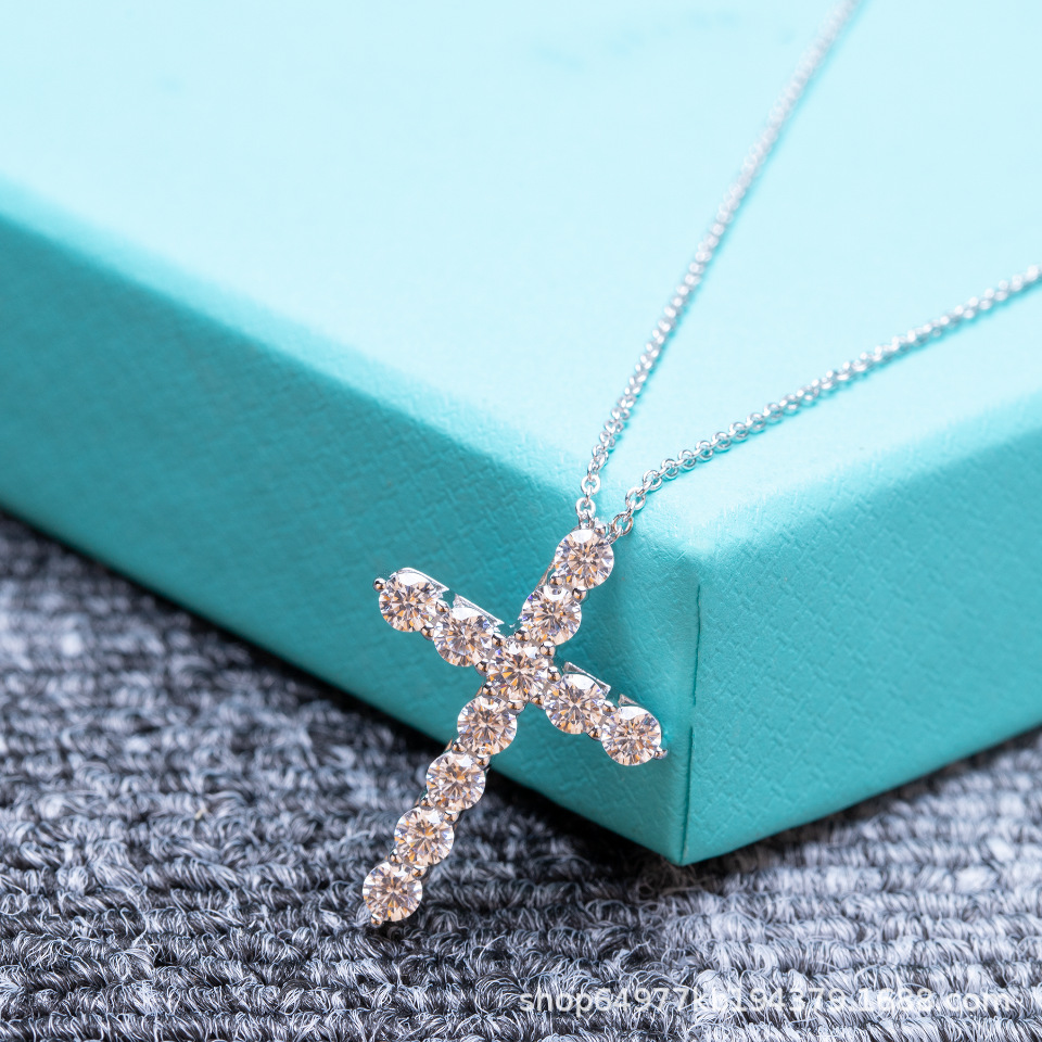 💰90 💕蒂芙尼💕蒂芙尼KNOT系列满钻十字架 守护平安情侣项链 情人节推荐。