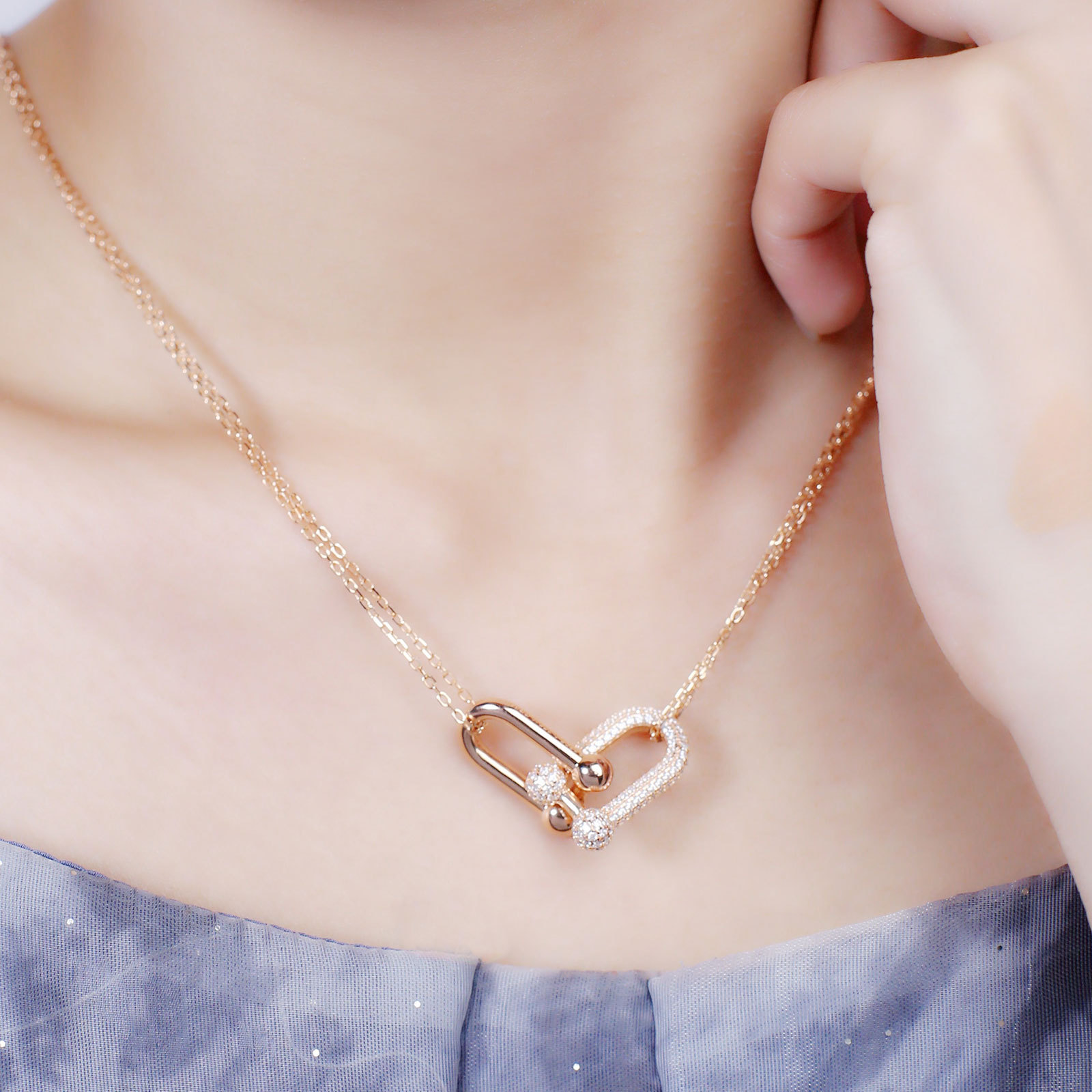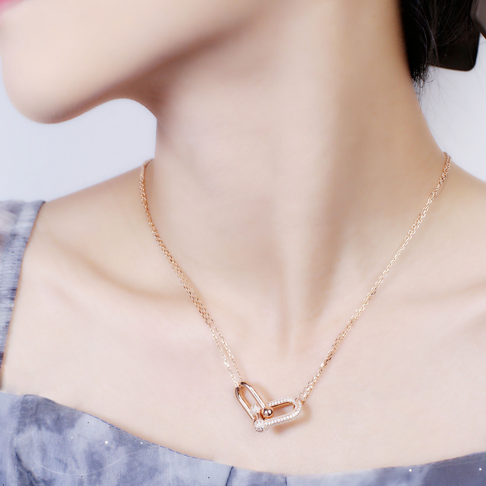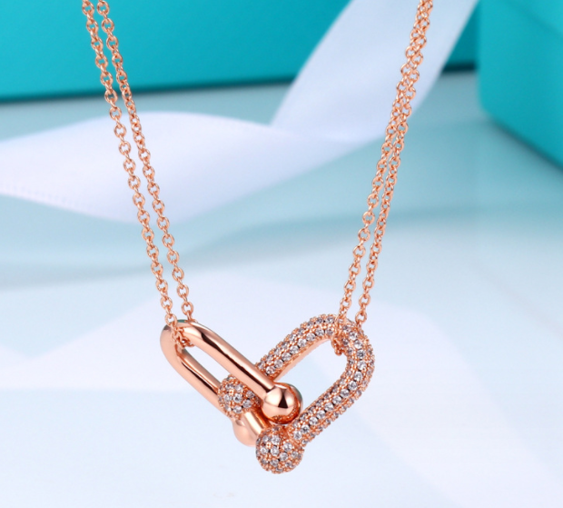 💰90 💕蒂芙尼💕蒂芙尼马啼扣系列 简约时尚环环互扣镶钻光面竹节双链锁骨链 情人节推荐 。