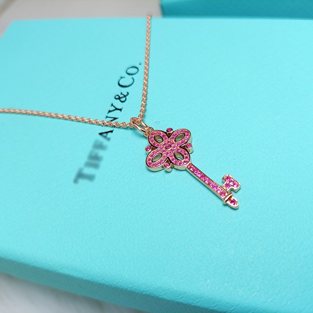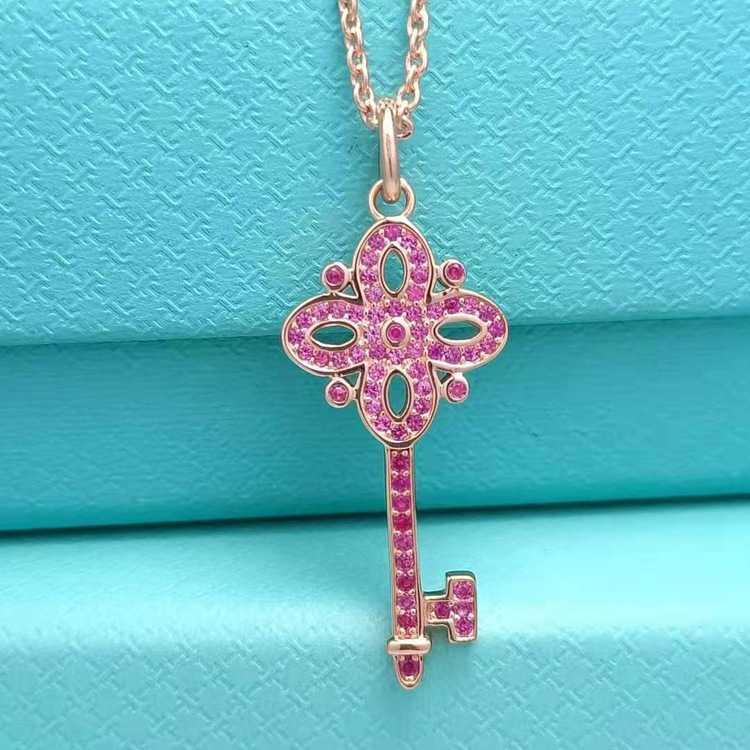 💰90 💕蒂芙尼💕蒂芙尼新款 纯银S925满钻 四叶玫瑰金钥匙吊坠,情人节特别推荐款!