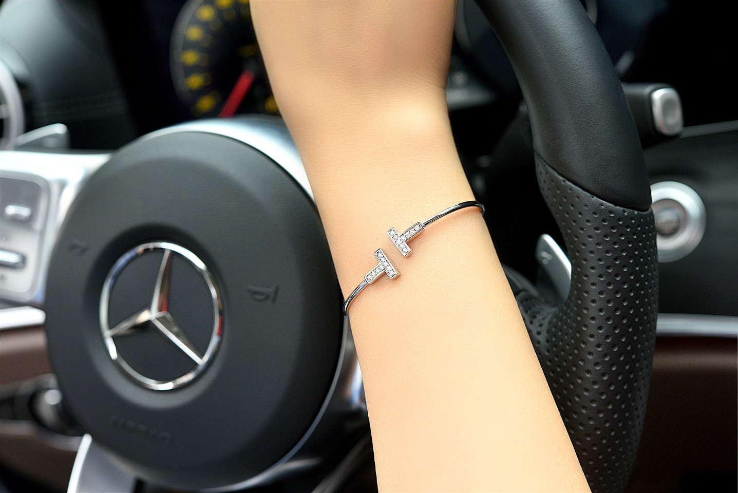 💰90 💕蒂芙尼💕双T型开口镶钻 白金色手镯,一生为你心动!蒂芙尼手镯与手链设计以闪耀金属镶嵌璀璨宝石,举手投足间,艺术气息自然流露!
