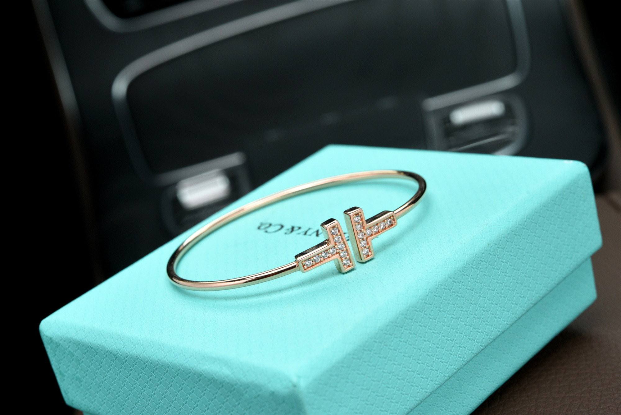 💰90 💕蒂芙尼💕双T型开口镶钻 玫瑰金手镯,一生为你心动!蒂芙尼手镯与手链设计以闪耀金属镶嵌璀璨宝石,举手投足间,艺术气息自然流露!