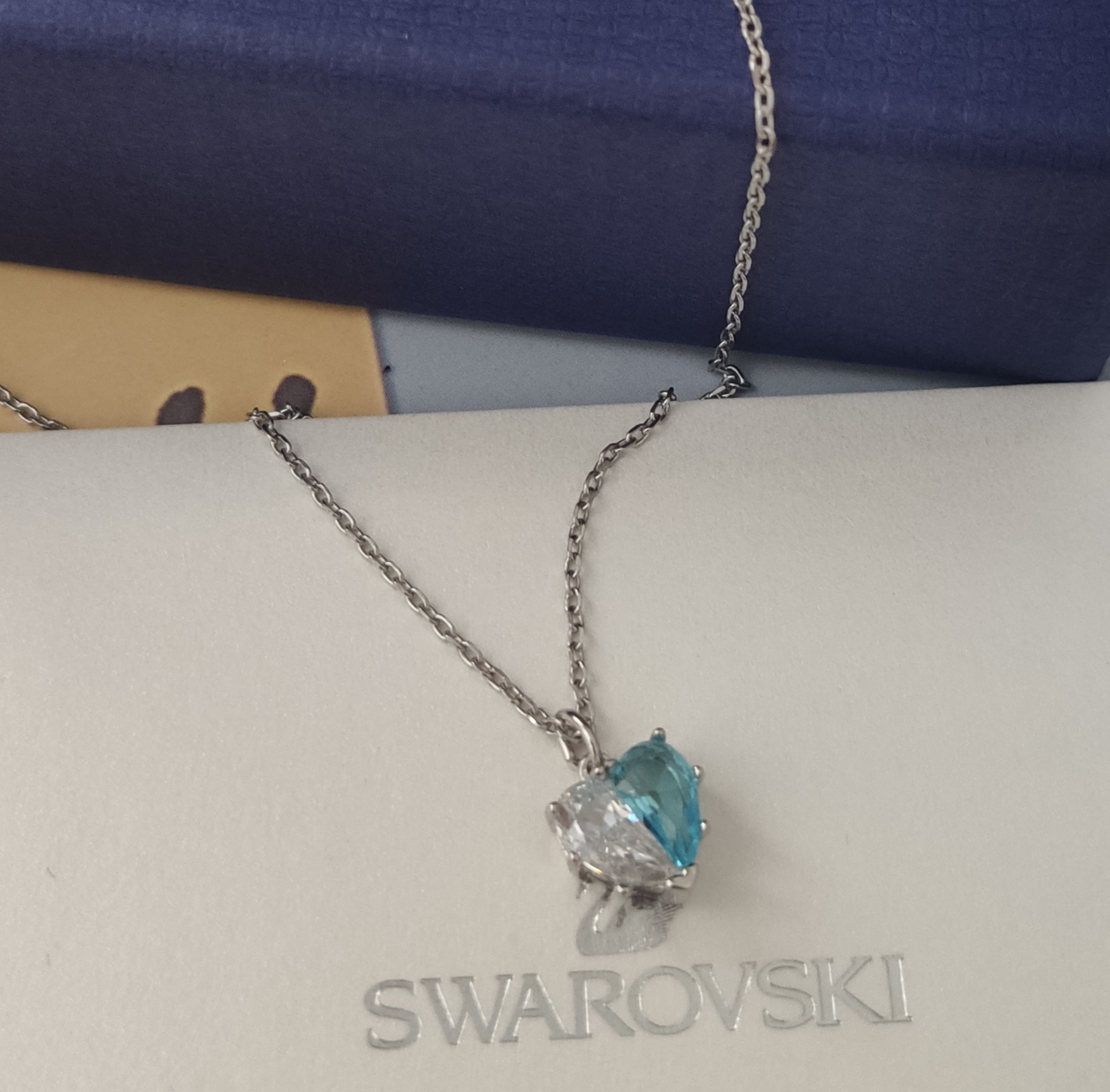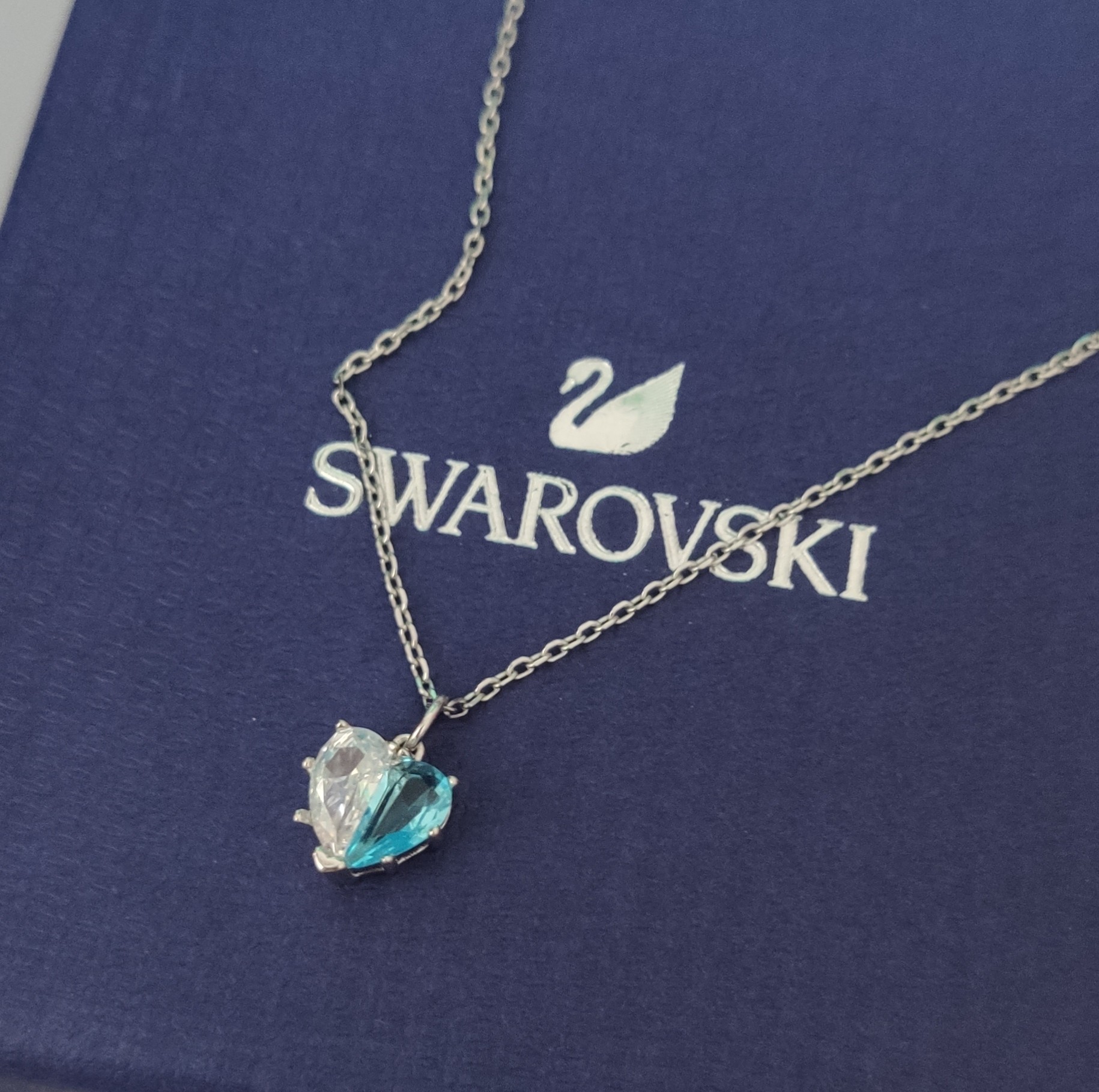 💰 80 现货 施华洛 Gema 新款轻奢半心贴贴项链,双色爱心,象征两人亲密无间。组合成爱心形状的透明色和浅蓝色水晶!充满现代浪漫气息!
