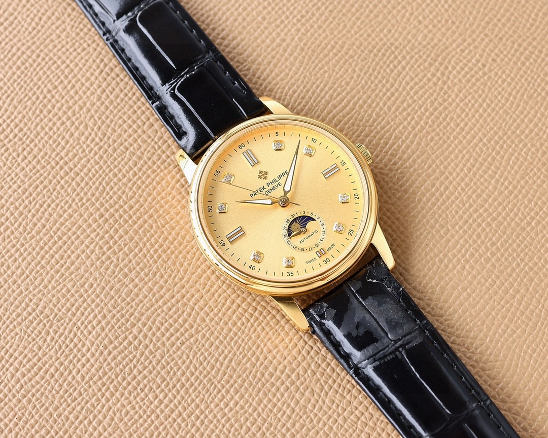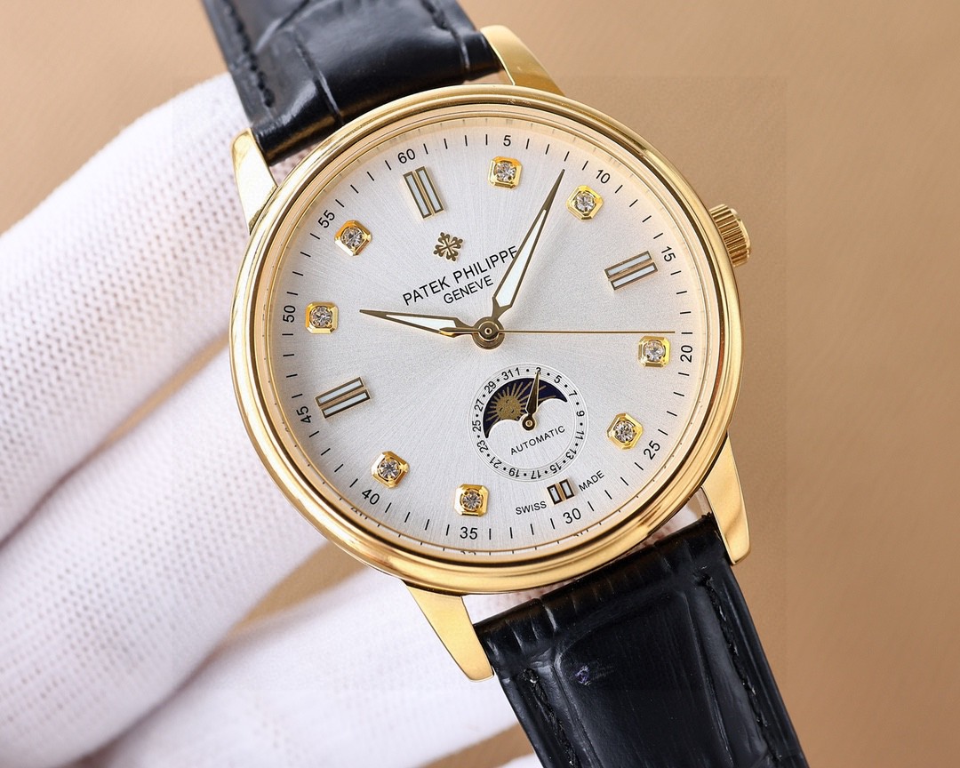 白1100-金1150。⑳②④🌐🌐🌐百达翡丽Patek Philippe男士腕表🔥.腕表月相系列,秉持了百达翡丽的一贯传统,更唯美的结合了6字位日历与被表友热捧的日月星相,无论是经典隽永的表盘设计,还是以精钢或玫瑰金雕凿的炫酷多边线条都不例外。更采用了瑞士ETA2824一6机芯 ,功能6字位日历大月相,表径40。蓝宝石玻璃。意大利小牛皮。原装针扣🔥AD出品 精品不断🔥