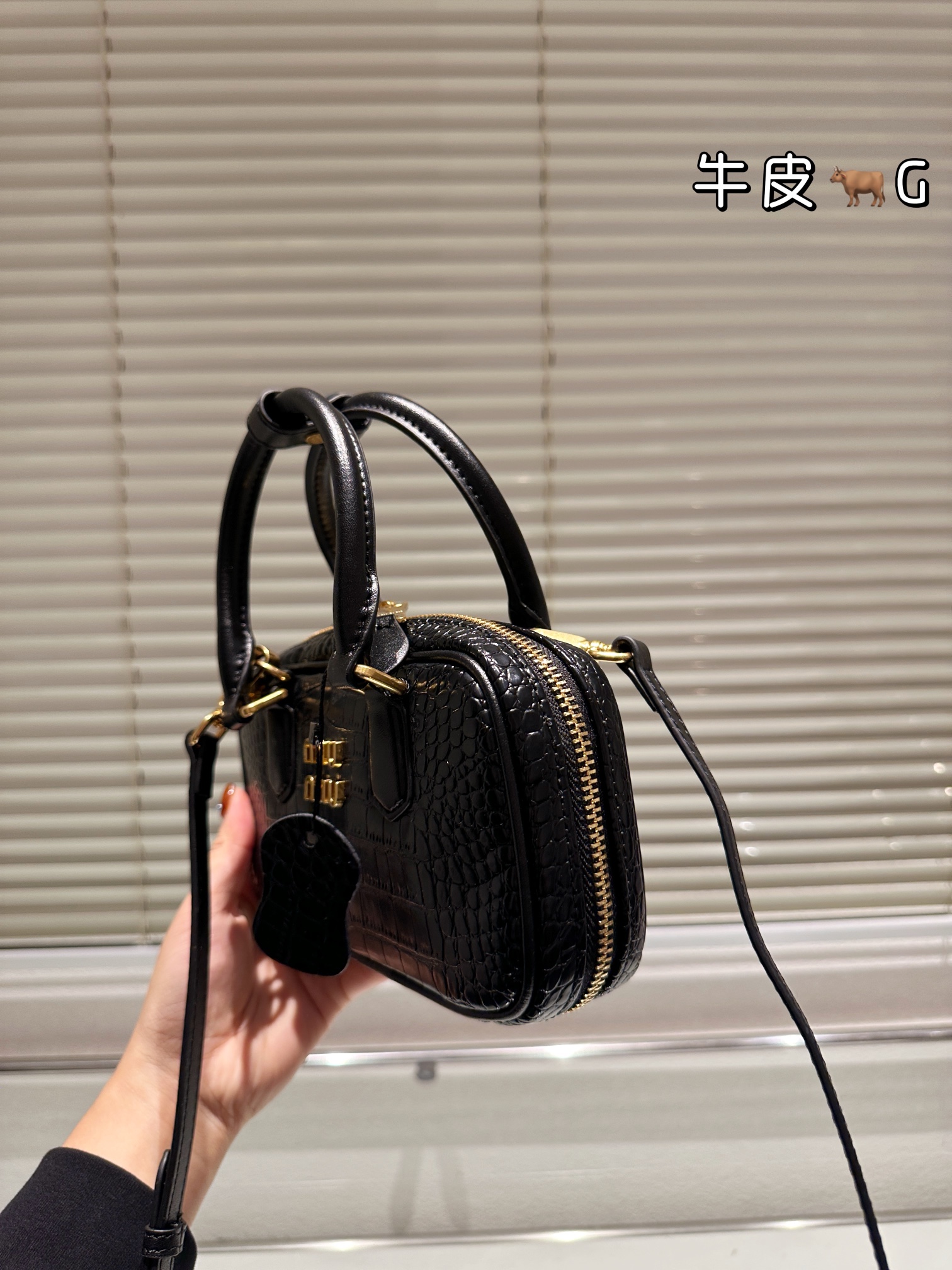 头层牛皮 P275 mini新版本 鳄鱼纹,Miu家新款保龄球包包,官网主推,今年绝对爆🔥款式,顶级进口小牛皮,Miu家独具风格Matelasse图案,包身精致立体有型,正面刻字徽标与皮革颜色相呼应,可拆卸可调节皮革长肩带,棉质缎面衬里,配拉链式口袋,众多明星网红同款, 尺寸19.5X10.5X4.5Cm,