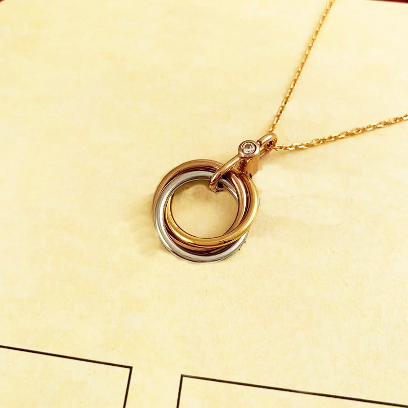 💰120 Cartier卡地亚带钻项链Trinity 玫瑰金黄金白金镶钻 三环三色金项链 !