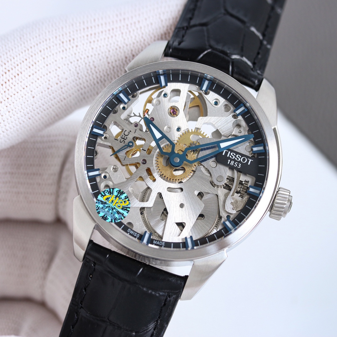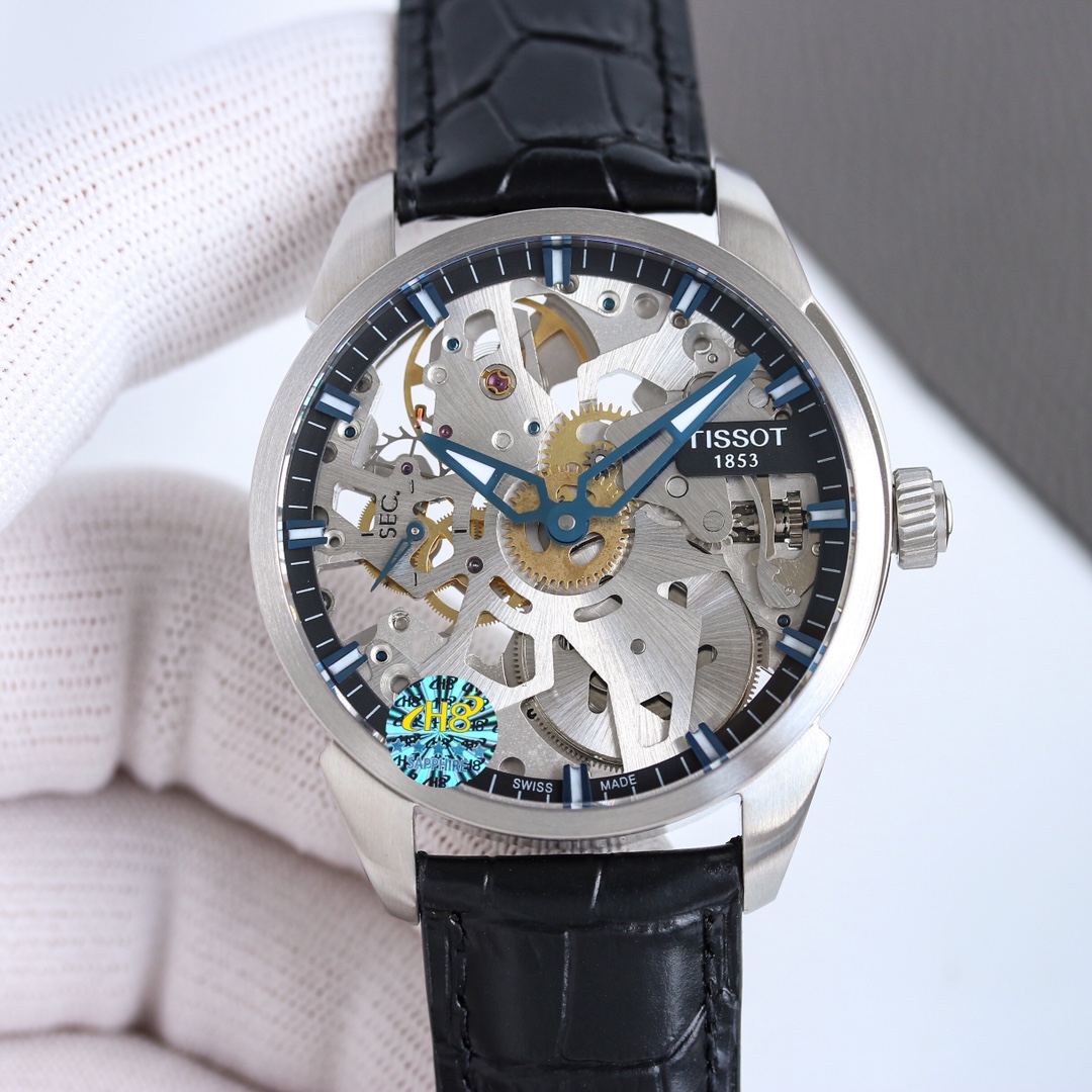 统一价:1300 TW台湾厂 天梭天匠镂空系列 V3版本 改进机芯放射纹路,改进甲板镀层颜色,增加6497ETA钢印。产品透过蓝宝石水晶玻璃表镜,可以看到五条犹如车辐般的线条从表盘中央向外发散,又像是一轮精美的风车。这款镂空腕表的每一个微小的细节设计都传递了独特的设计美感。指针和刻度采用优雅的蓝色,与镂空机芯十分相配,让读时更加清晰便捷又充满乐趣。腕表表壳采用坚韧的316L精钢材质打造,表面经过拉丝效果处理,呈现出动人的质感。表径43毫米,厚12毫米。表盘独特的细节设计为佩戴者们带来了古典而不失现代感的体验,镂空的表盘是一场工艺的考验,也是一种非凡的视觉享受。