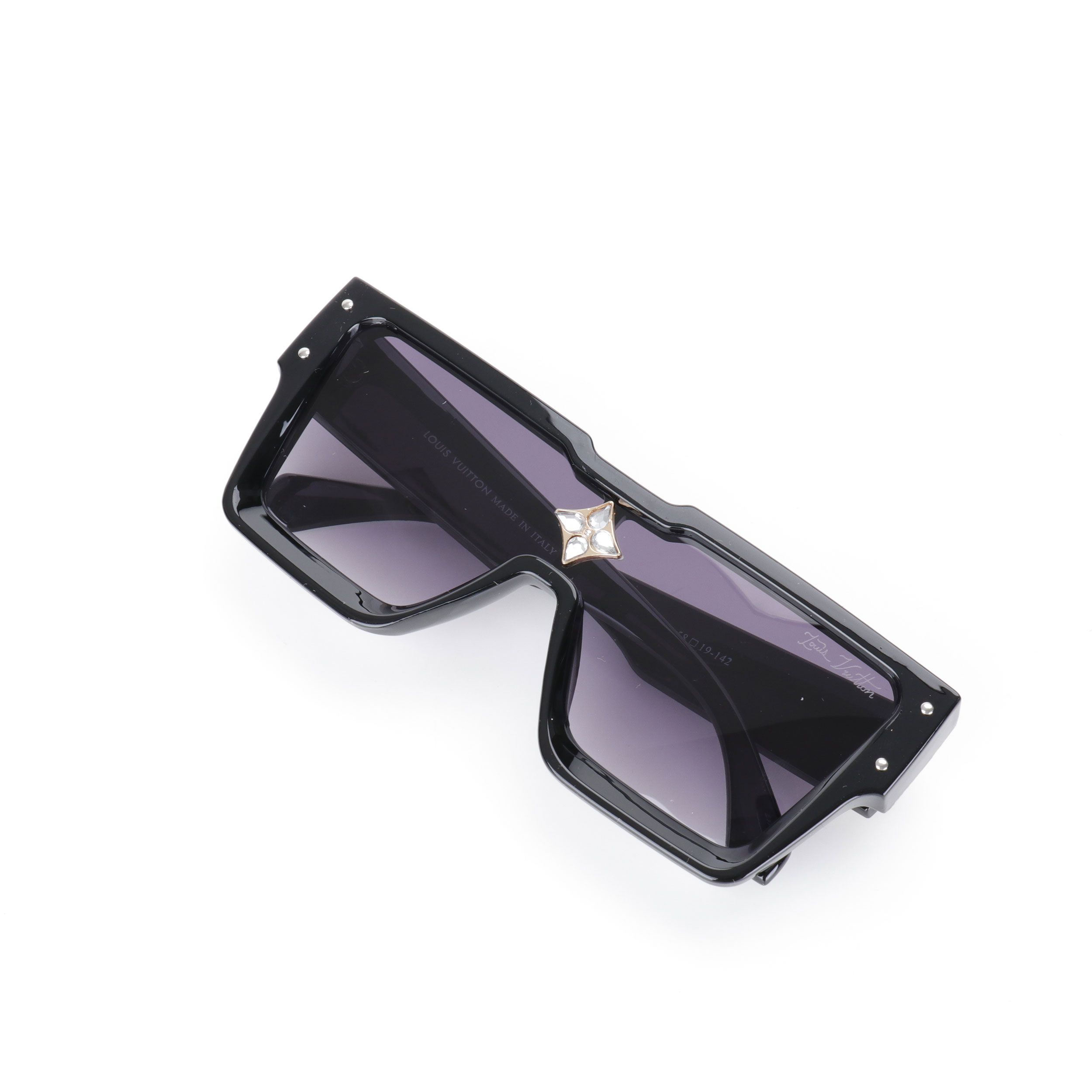 本地自取💰180 LOUIS VUITTON LV CYCLONE 不规则形太阳眼镜Z1736E 官网在售价¥6,700RMB!本款 Cyclone 太阳眼镜结合方正轮廓和深斜面,大胆宣示摩登风尚。由深及浅的渐变镜片与框架色彩不谋而合, Monogram 花卉栖身鼻梁架,为建筑主义设计点亮璀璨光芒。详细特征:渐变醋酯纤维框架-渐变镜片-方形-金属件-鼻梁架饰有 Monogram 花卉-正面配有金属饰钉-铰接饰有 LV 字母-透光度:28%-紫外线遮蔽率:100%-太阳眼镜镜片过滤级别:2,配专柜全套包装 Color:黑色金标 渐变银标