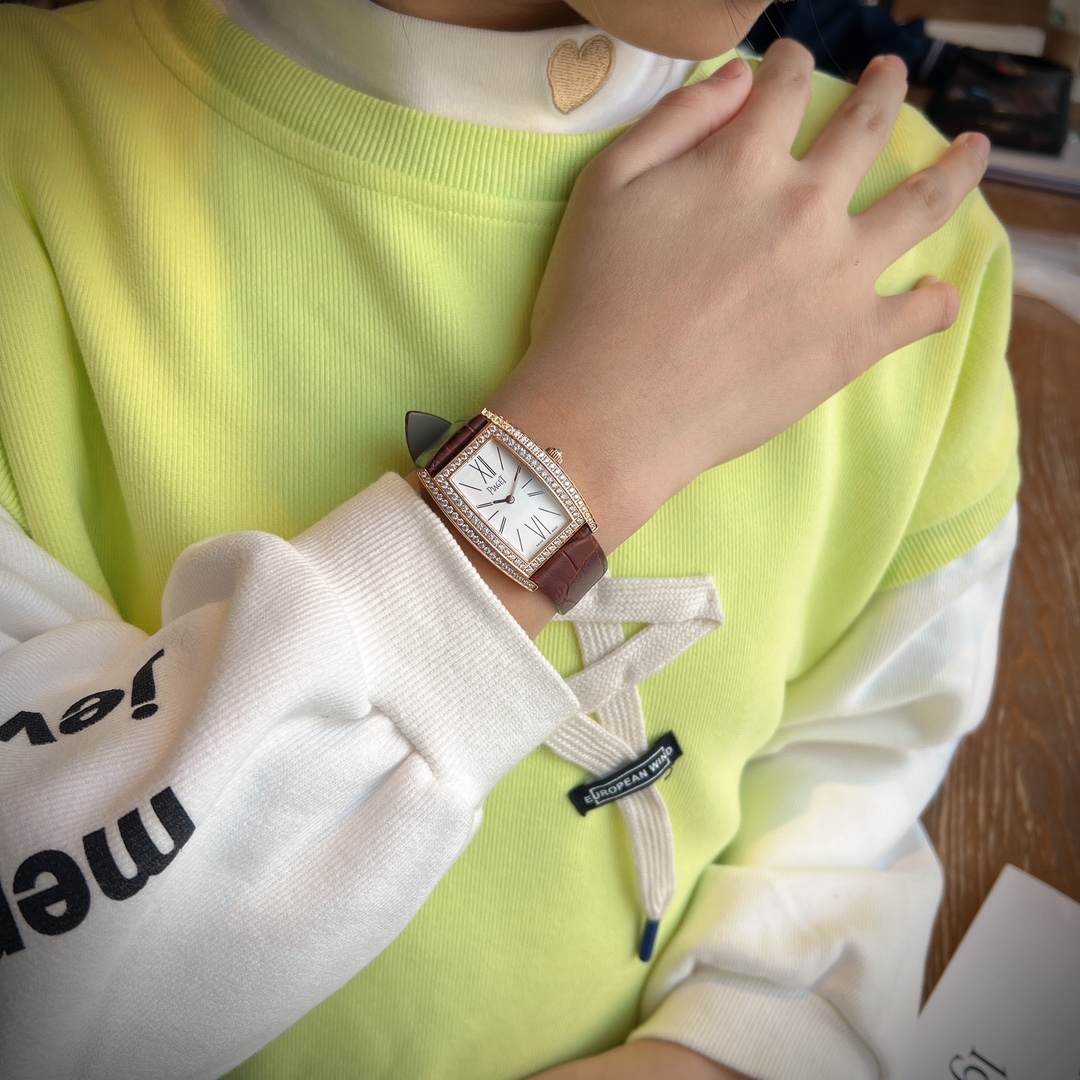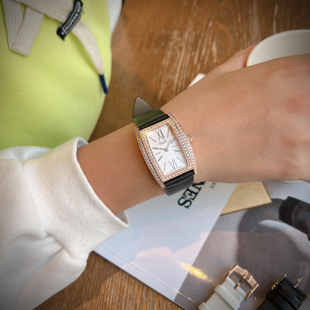 💰480 🌟🌟MF厂再添新作🌟🌟 伯爵PIAGET LIMELIGHT犹如一套优雅的女装晚礼服,衬托出女士的迷人气质,是众多名媛佳丽的腕上首选。流畅的线条设计不仅高贵典雅,表壳上镶嵌着两圈璀璨的钻石,颗颗晶莹剔透、将奢华优雅演绎得淋漓尽致;钻石拥有每个女人都无法抵挡的魅力,钻石腕表更是对美的升级,所以能拥有这样一款腕表是众多女性的梦想。表冠宛若一枚小皇冠,边缘采用齿轮纹设计、雕工的精湛展现的淋漓尽致;搭配绢带表带非常符合女性的气质,散发出女性灵动之美;高贵的酒桶形腕表,随着手部的动态,表壳闪钻为之添上动人舞曲,让女士展现纤美手腕、完美释演高贵与时尚的代名词。尺寸27mm*38mm*8mm。