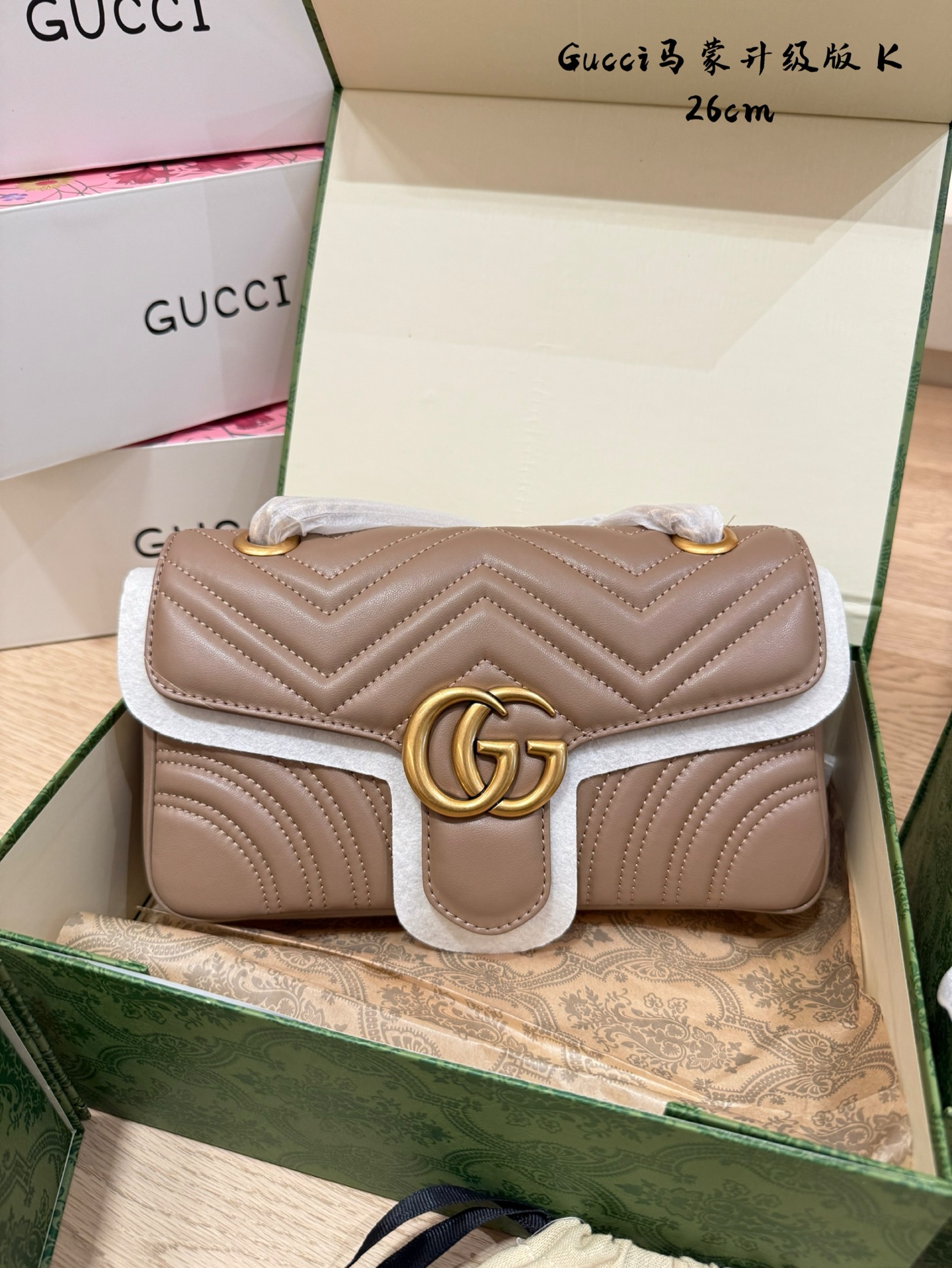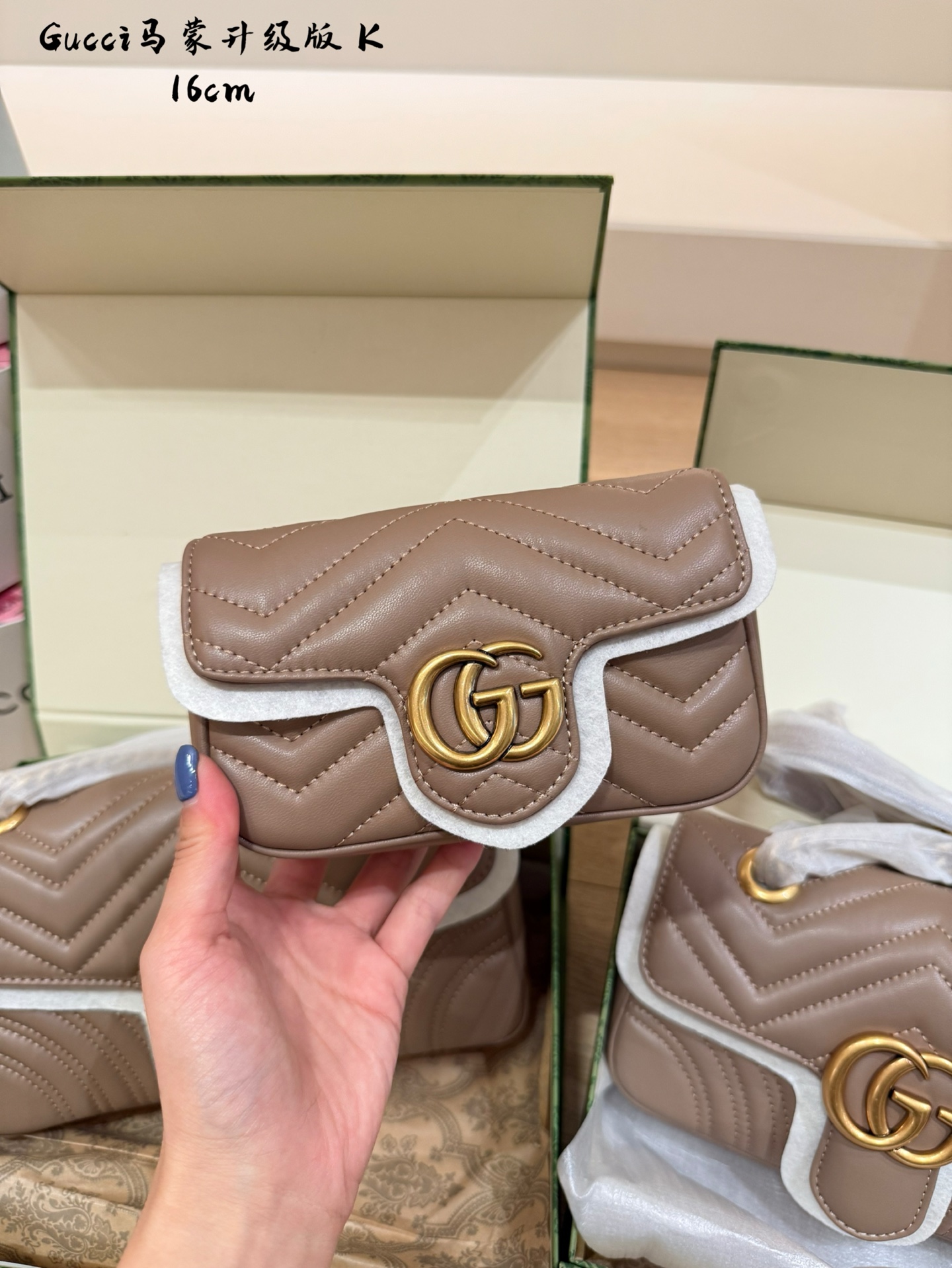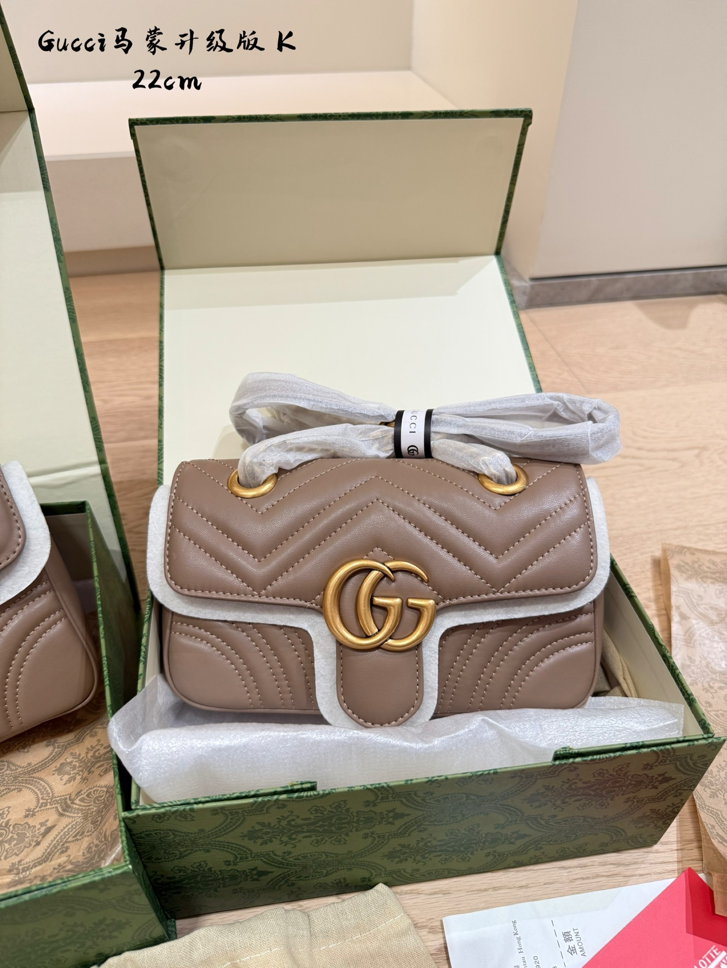 💰260 GUCCI marmont|经典&百搭! GUCCI马蒙链条包经典尺寸: 16cm 22cm 26cm 经典金扣双GLOGO复古做旧五金波浪纹衔缝牛皮!采用的是小牛皮不仅有光泽感还很耐用单肩可以优雅成熟斜挎可以休闲个性一包顶百包