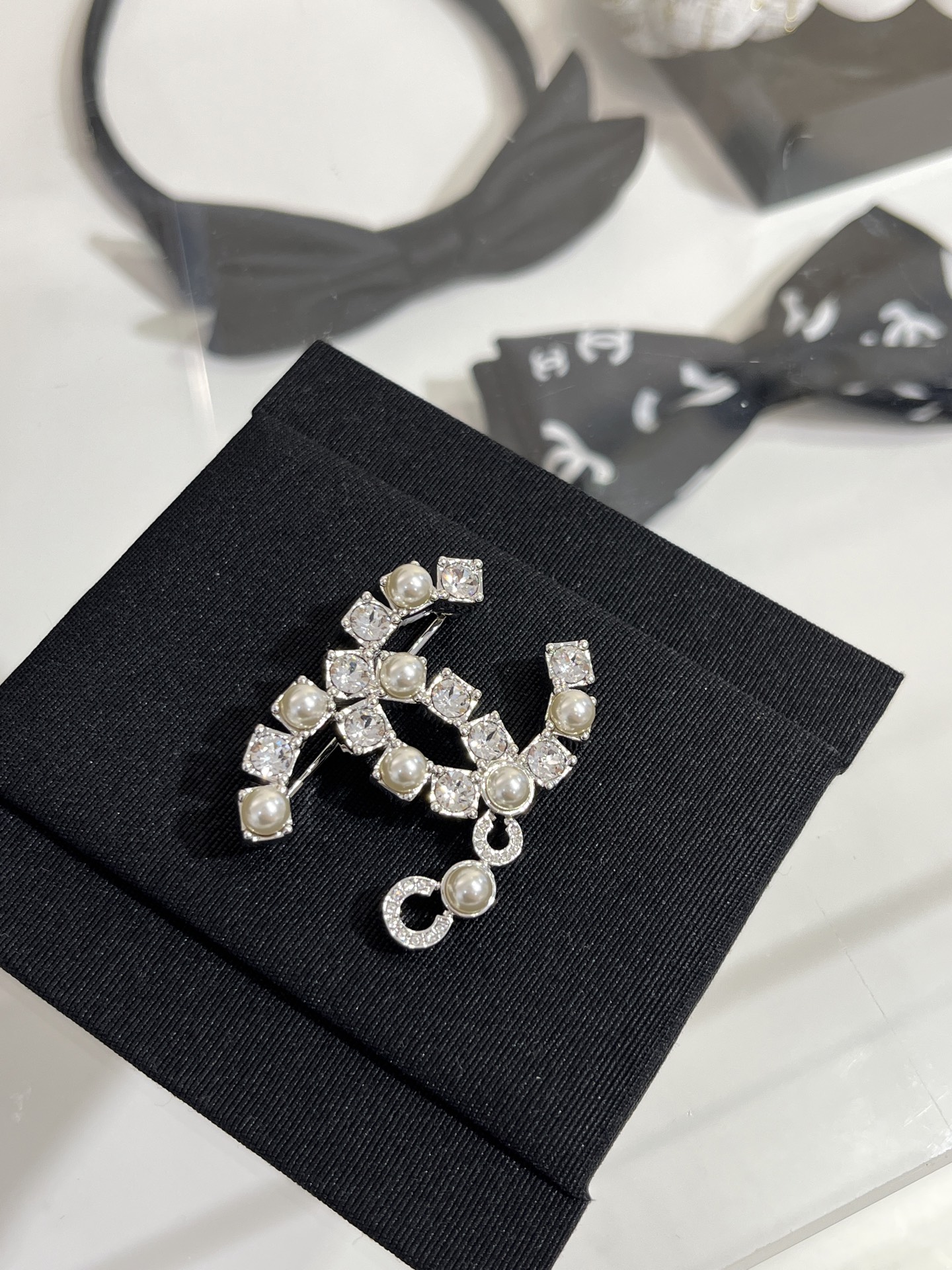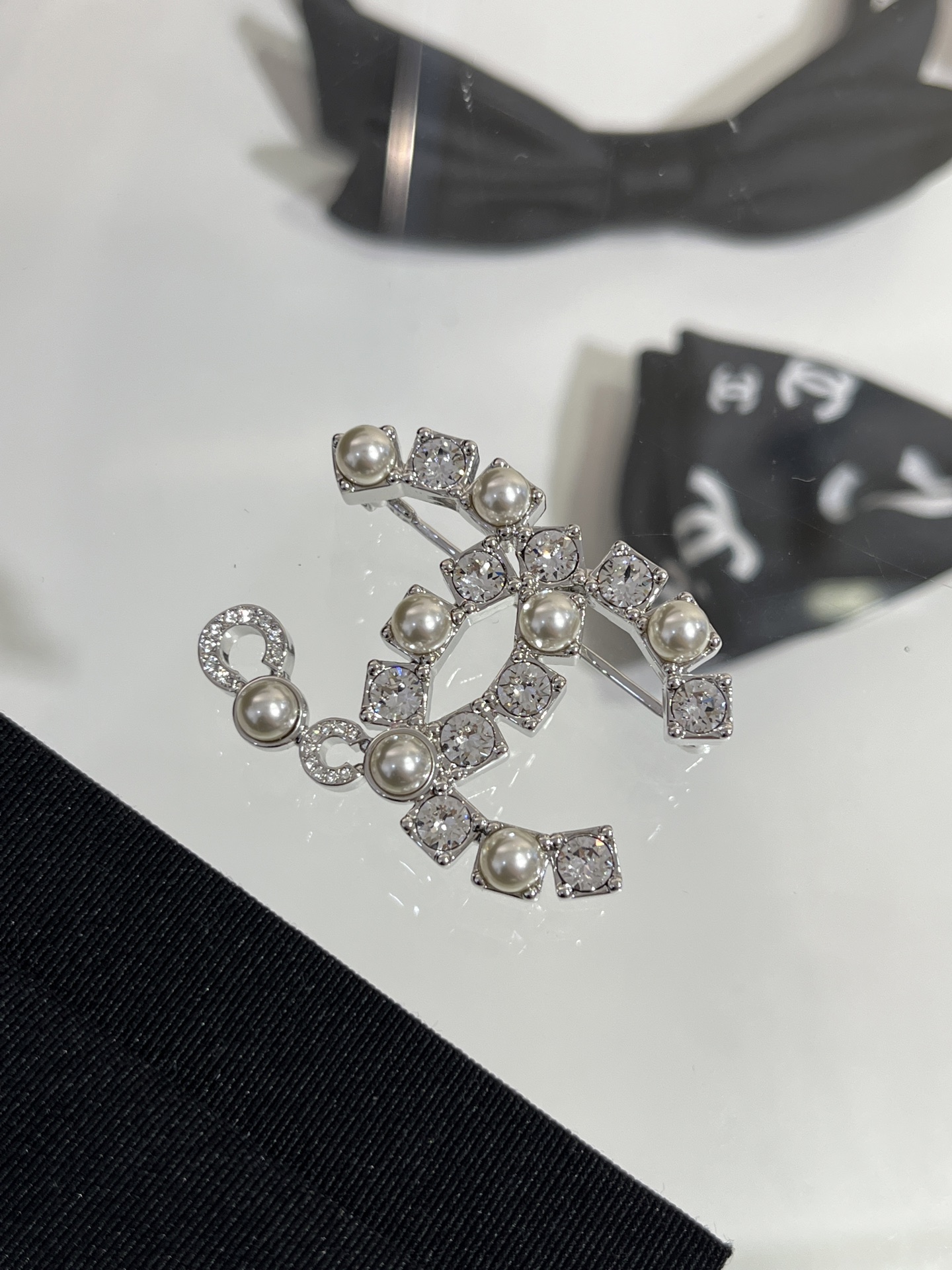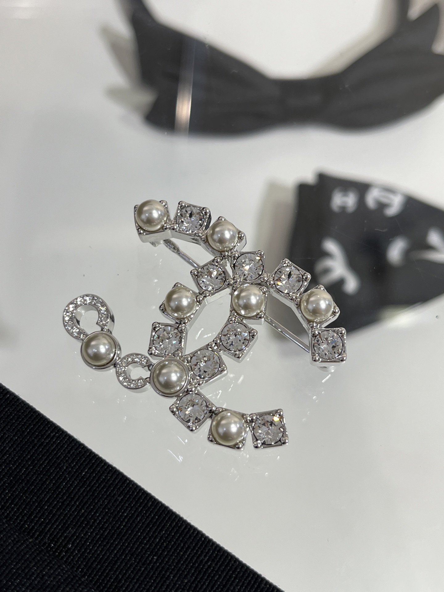 今日到货🆕coco胸针 𝑪𝒉𝒂𝒏𝒆𝒍 25s新款银色水钻拼珍珠双C胸针 水钻珍珠coco字母完美融入双C造型 随意搭配都高级感十足 细节很精致 yb一样黄铜材质 施华洛钻 定制珍珠 胸针带包装盒 顶级版本