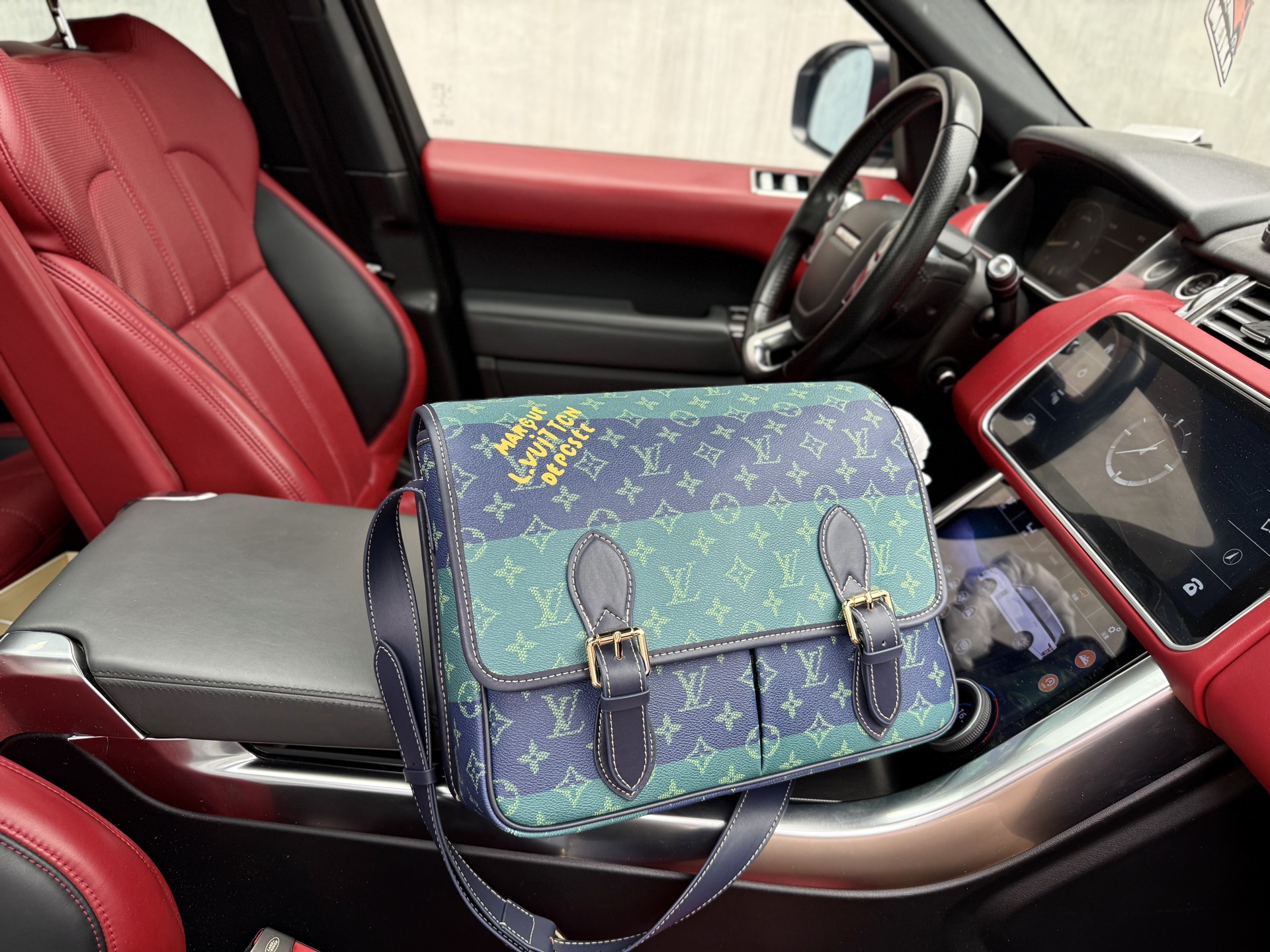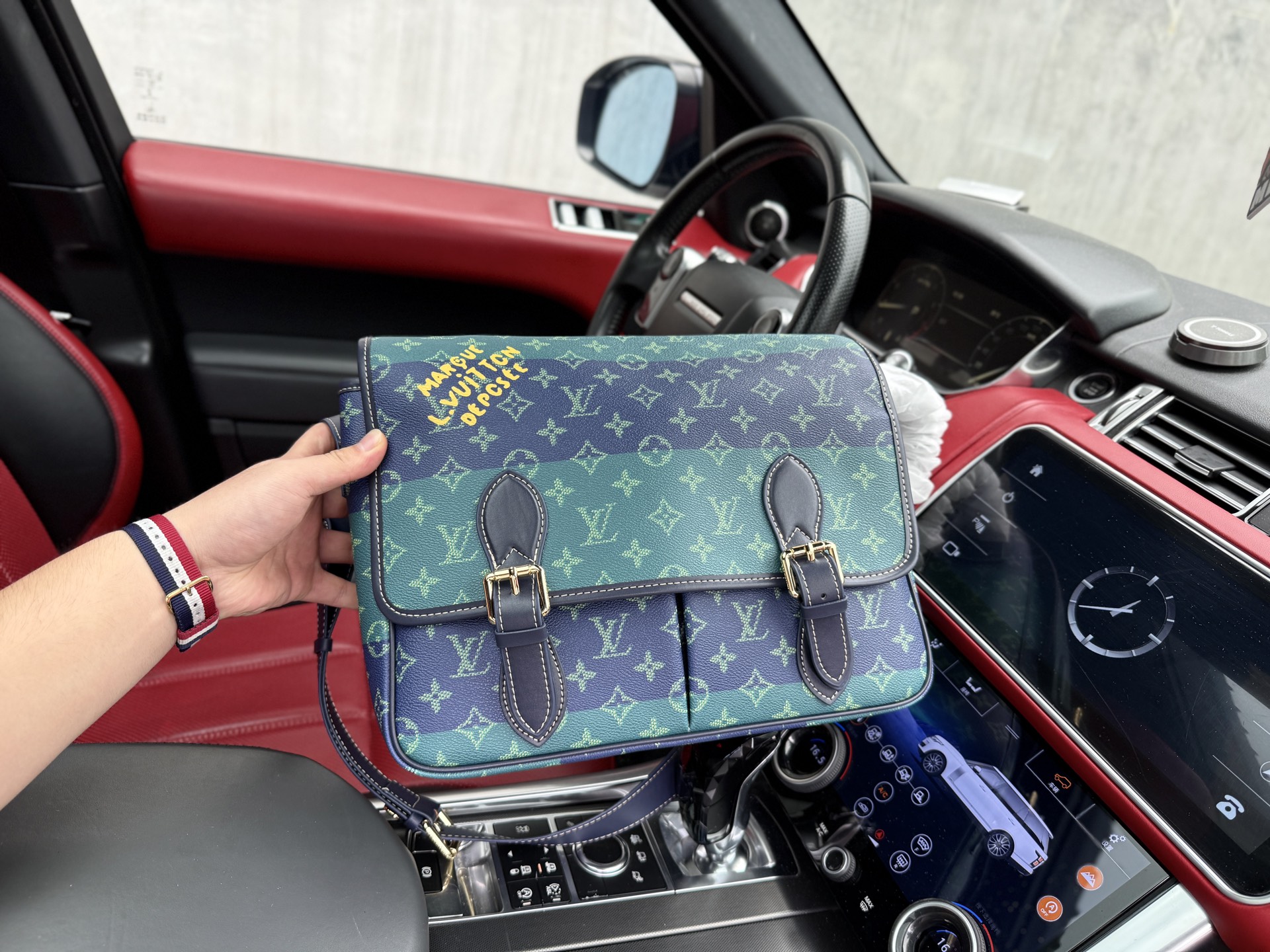 💰280 📷高端货‼️ 新款 “Louis Vuitton”lv单肩包💼 路易威登单肩包手提包邮差包 M15187 LOUIS VUITTON SATCHEL 印花金属配件邮差包 Monogram 帆布 单肩包 男款 蓝色拼色 超高清五金logo标志、顺滑拉链、油边超平滑、做工精致每个细节到位!男人必备款 尽显运动风范 商务工作中的理想伴侣。尺寸:35.5x24x12cm 配:折叠礼盒🎁