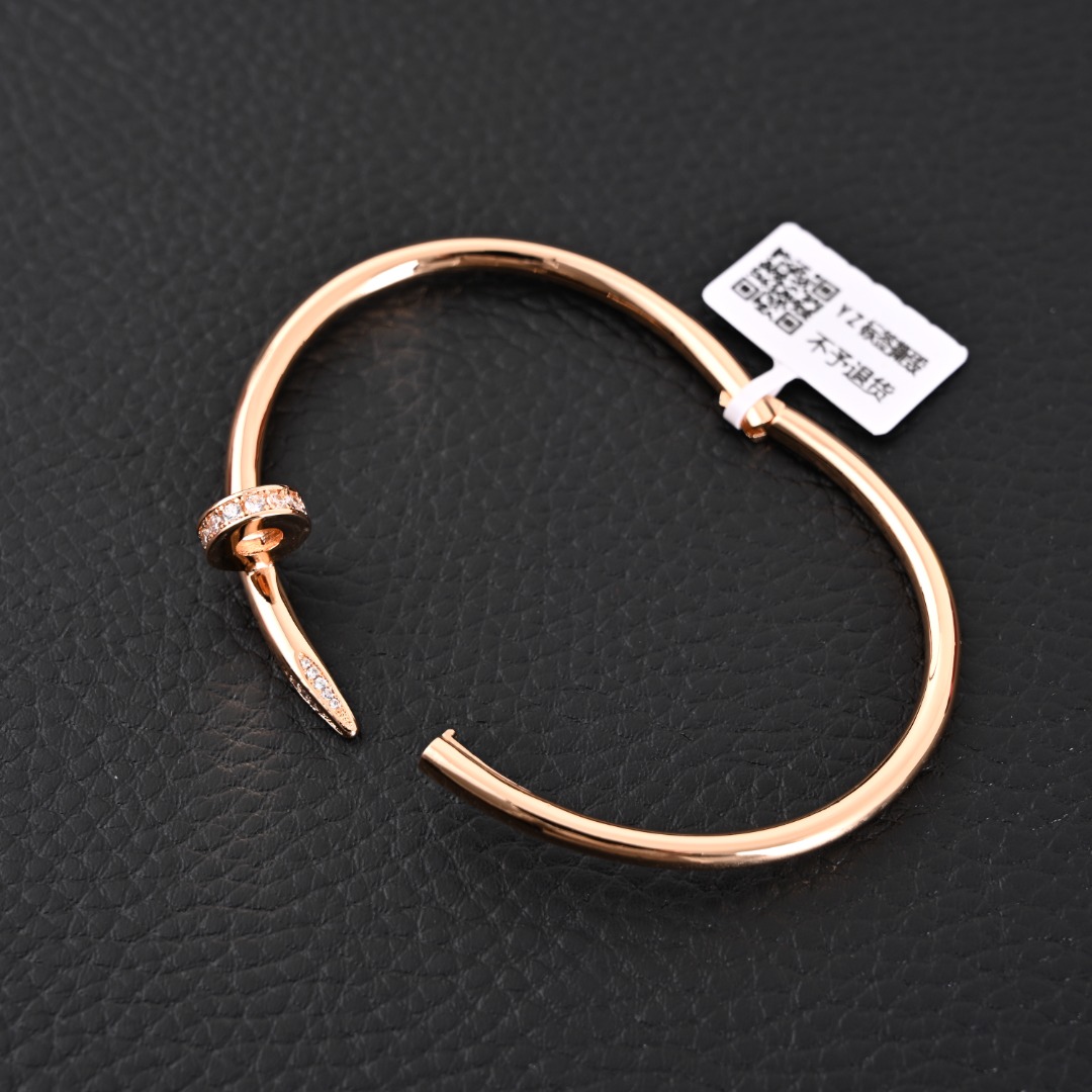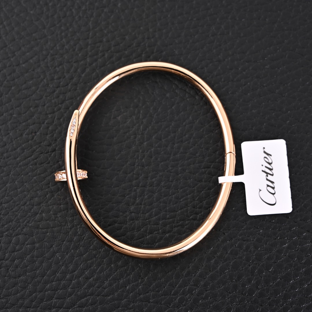 Cartier/卡地亚 Juste un Clou 头尾钻钉子手镯 头尾钻钉子手镯 CNC版本 玫金色 卡家钉子手镯之经典无需多言了 “简约、个性迷人” 保持原系列力量自由感输出的同时,更深谙时髦叠戴 搭配各系手链,展现不一样的你。 v金材质制作,工艺细腻,细节完美 Size:17# 19# 卡地亚手镯