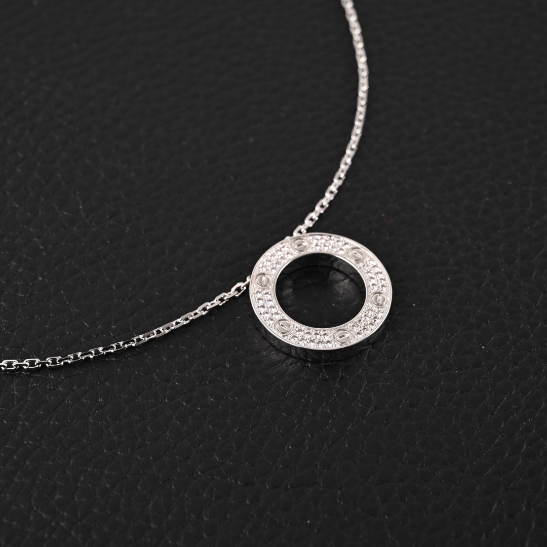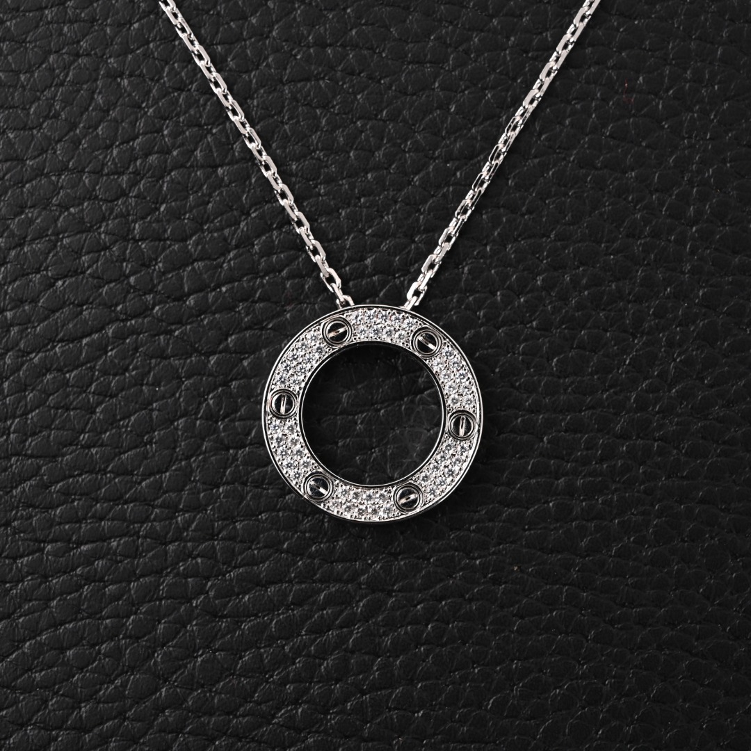 Cartier/卡地亚 满钻大饼项链 love系列大饼项链⭕很好搭配衣服,超级大气的款式[赞R]百看不厌、越看越爱❤️两面可以戴呀!【卡地亚光面LOVE大圆饼项链】重磅出炉!有厚度有分量! 【V金高品质➕厚金电镀】love系列不管是手镯戒指还是项链,边缘的棱角一定是分明的不得了,甚至用手去摩擦会有一丢丢锋利感!项链的螺丝面刻痕非常多而且深邃,很难拿捏,只有采用CNC精雕出来的效果才是最对版的。扣子也是这款的经典所在,按压一下突出的鹿头拨开即可打开! 卡地亚项链