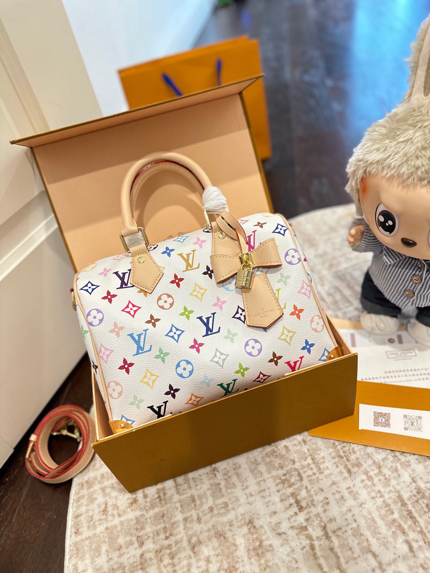 💰300 折叠礼盒包装 Lv 小枕头包 原单密封包装 对NANO SPEEDY尺寸相当小巧 所以搭配中尽显时尚靓丽迷人气质,但是携带轻盈,轻轻松松搭一款NANO SPEEDY出门,它不仅适合休闲打扮,同样适合运动、旅行、参加party时使用哟,小身材的迷你包就是这么任性 尺寸25cm