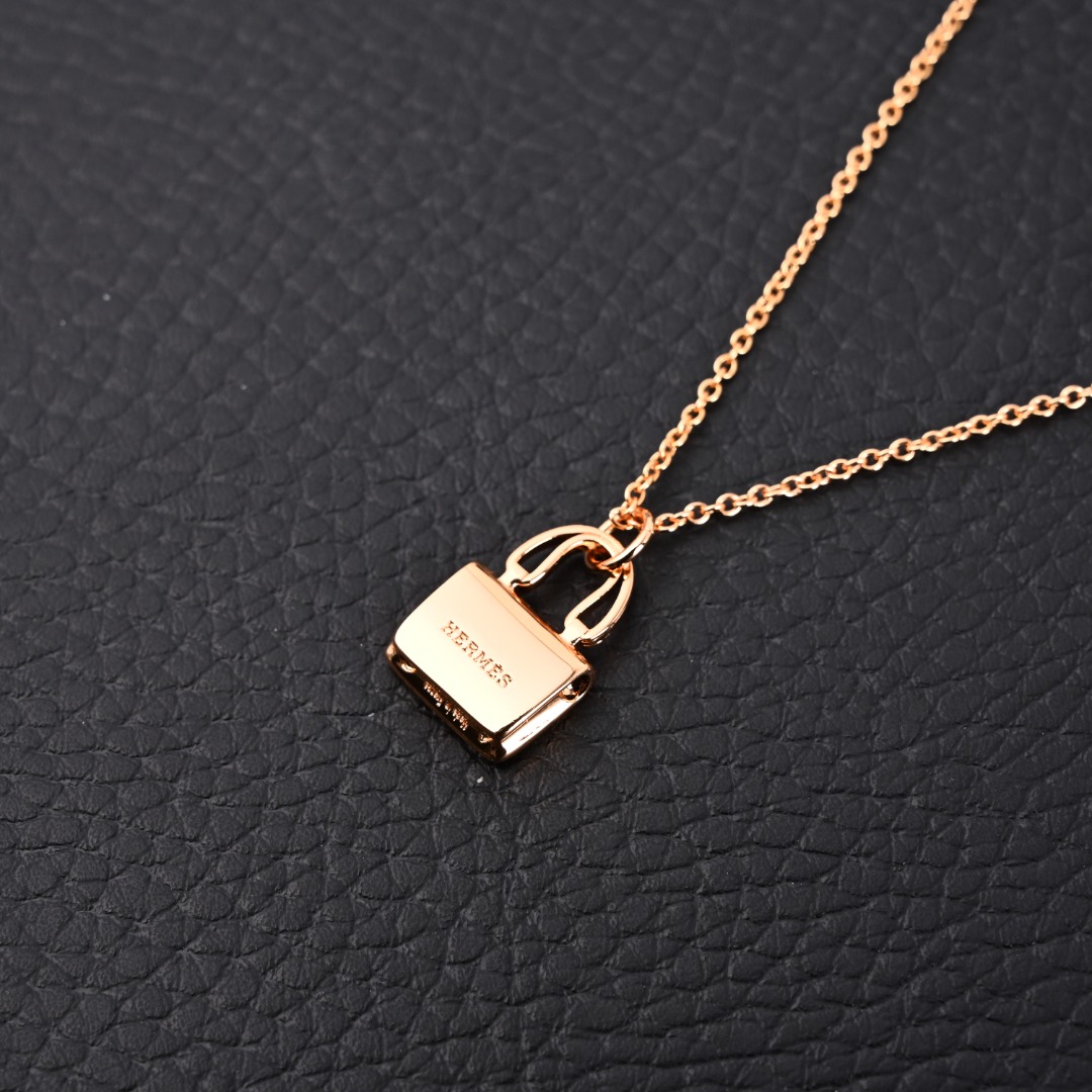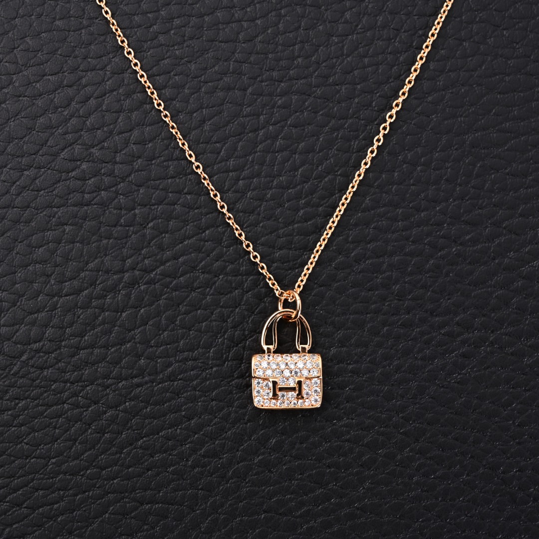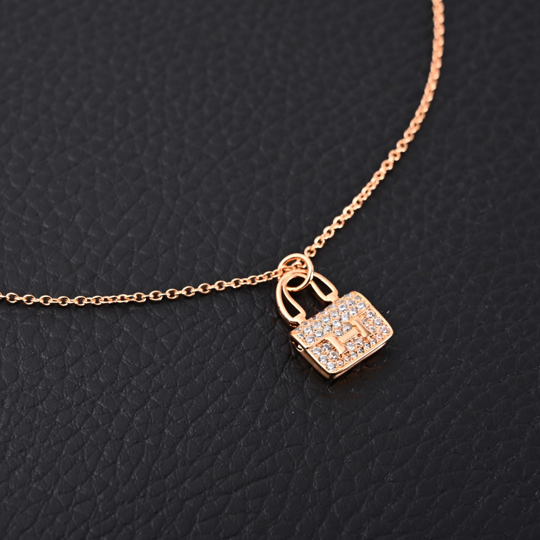 Hermes爱马仕 满钻包包吊坠项链 18K金涂层,全套正品专柜礼盒包装 #退换包装损坏扣20元。