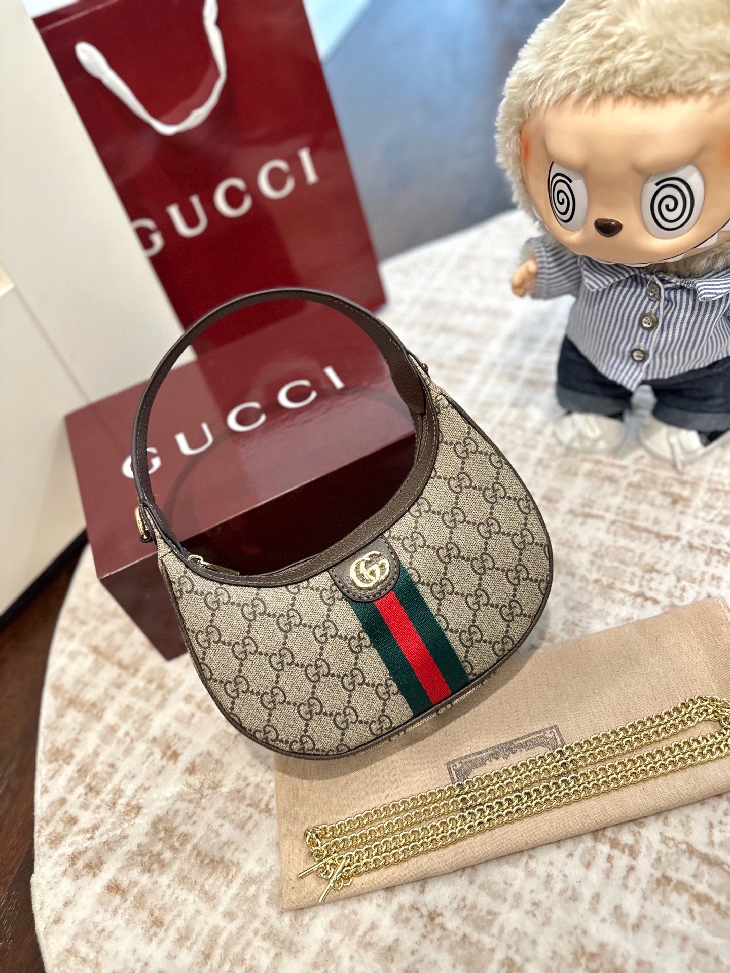 💰260 礼盒包装 GUCCI 古驰半月牙 腋下包单肩斜挎包手袋腋下包 可以 美到无法无天的款式 今年简直引领时尚最in元素 上身超级好看 尺寸:19*5*11cm