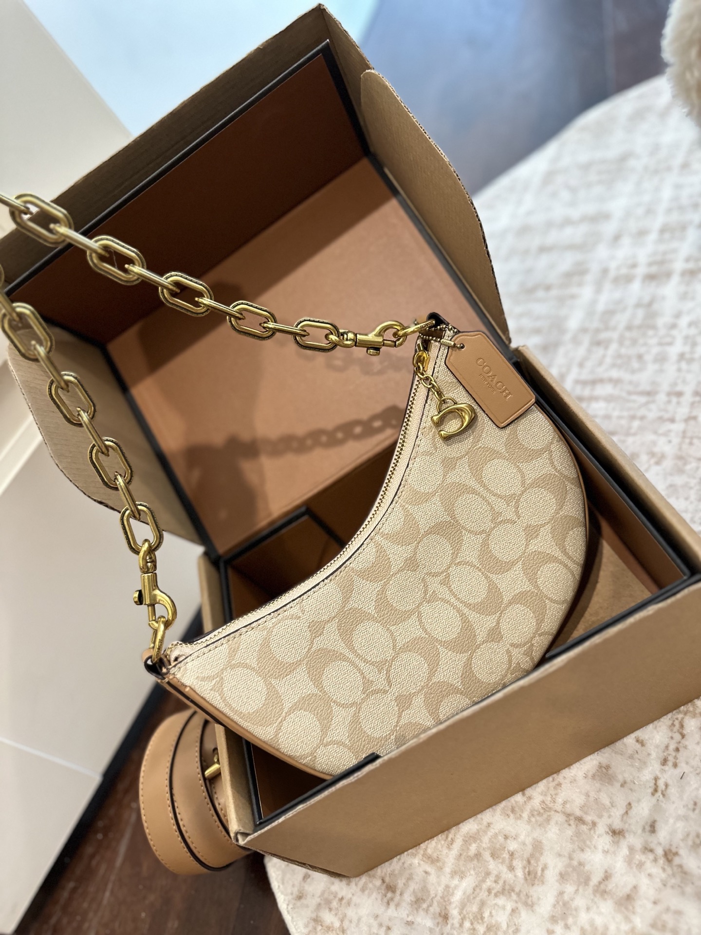 💰260 礼盒包装 蔻驰 COACH 月牙马车单肩包. 轻松演绎复古时髦 包型挺阔 简约而不简单不需要过多的装饰 日常搭配西装和T恤 就能将高级感体现的淋漓尽致 尺寸:23cm