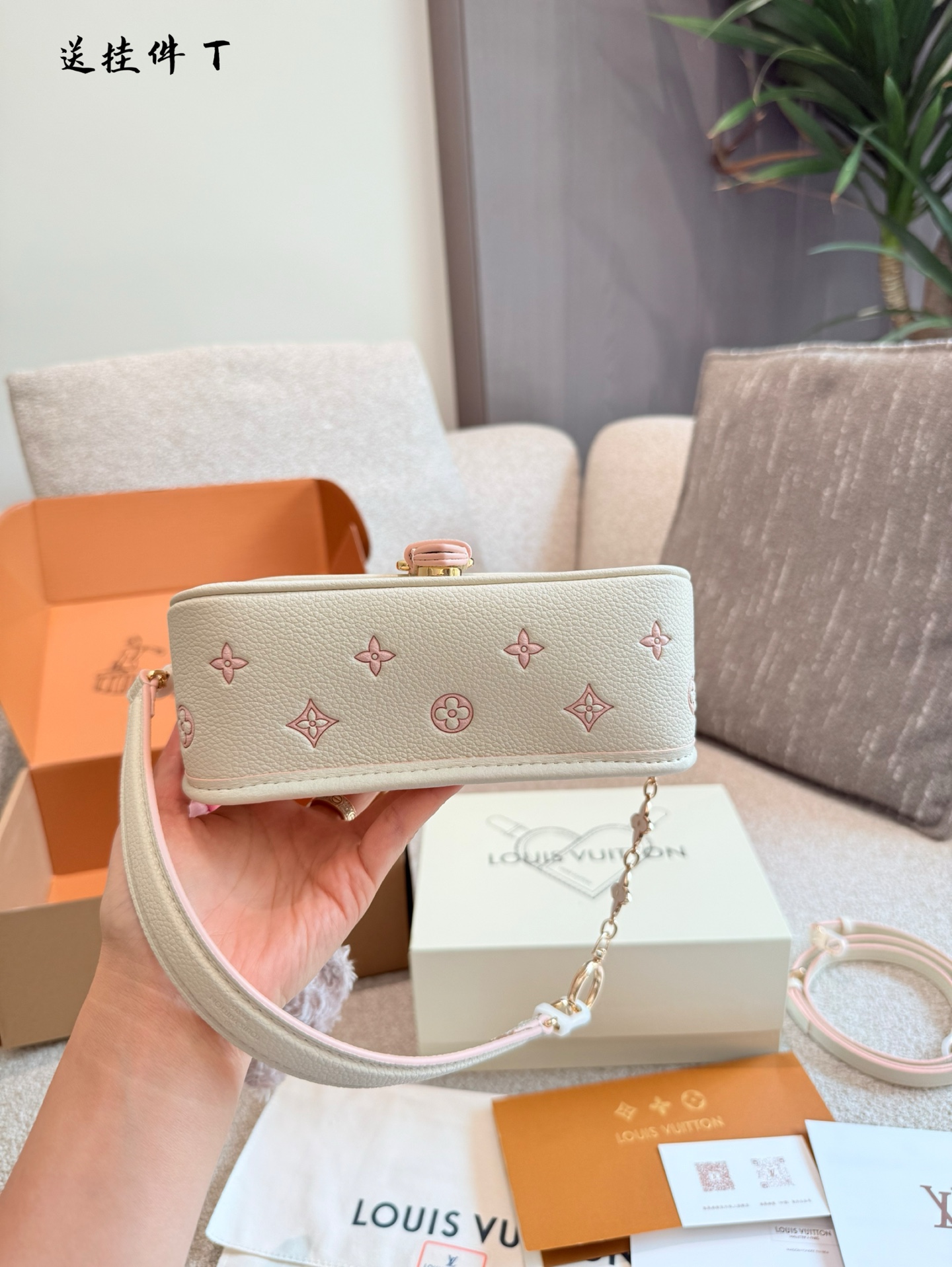 💰280 送挂件 送延长链 LV| 淡奶草莓nano Diane迷你法棍是谁要看这个迷你小法棍来的 这不就是说来就来~ 超级清新淡雅可爱的小包包 手拎单肩斜挎都能轻松驾驭是适合夏天的小包包 尺寸可以放下Pro Max的~18cm 双盒包装