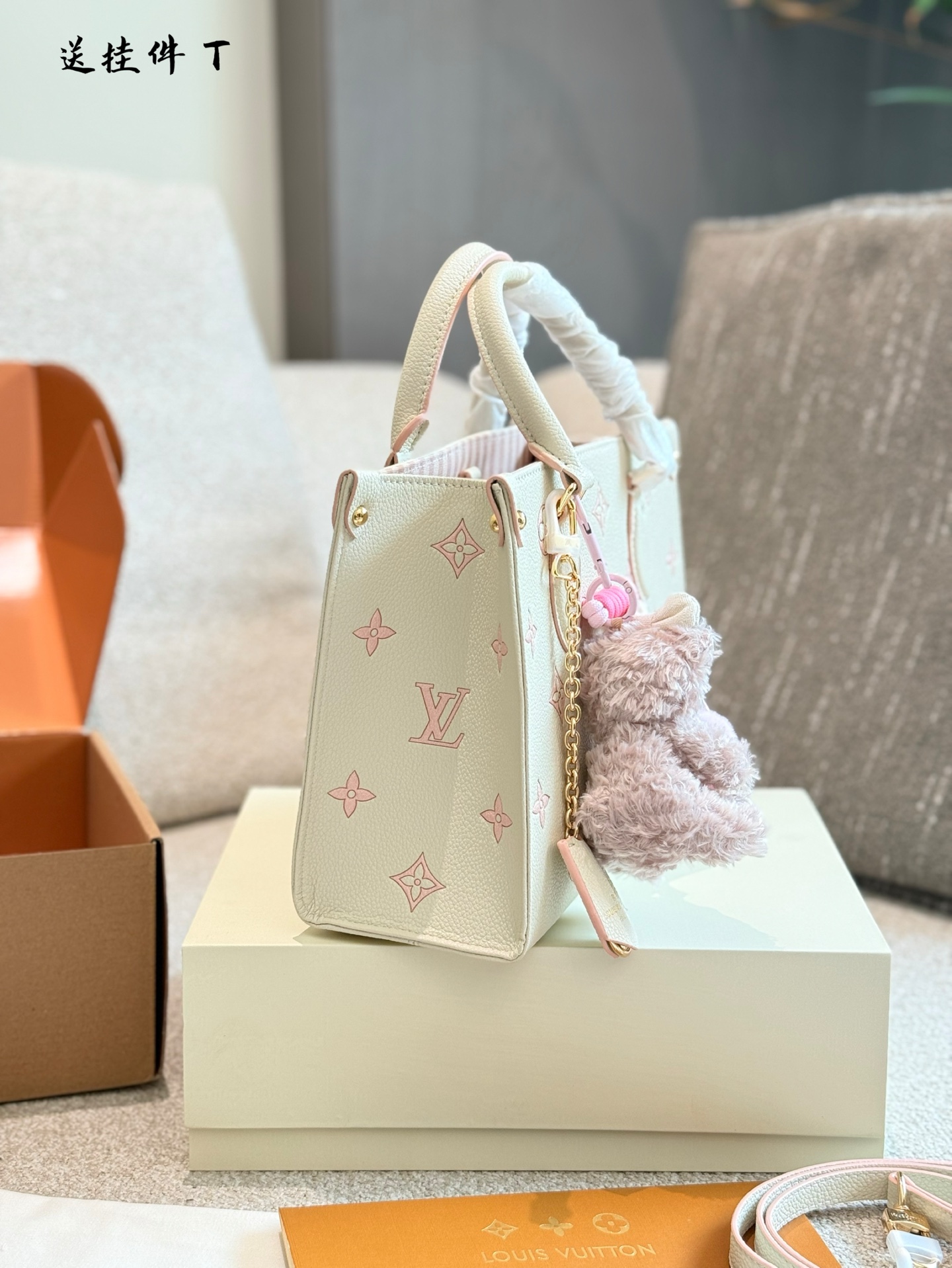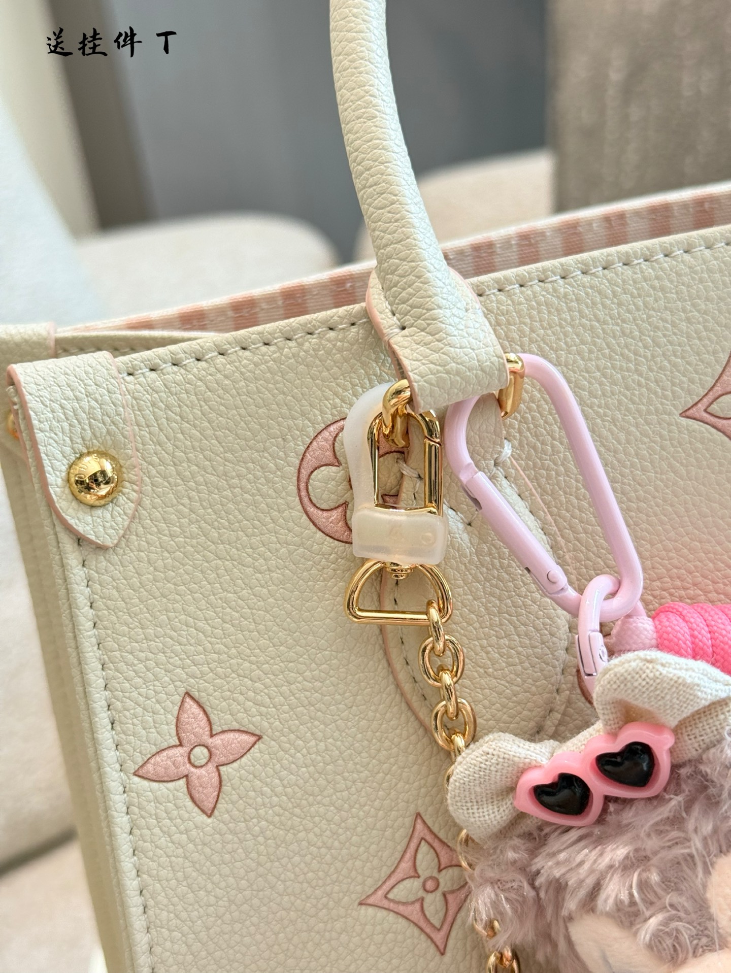 💰280 LV| 5月新款淡奶草莓onthego托特包经典包型新配色 托特包真的好好看~ 自带挂件超适合小甜妹 手拎单肩斜挎都可以~25cm配盒子