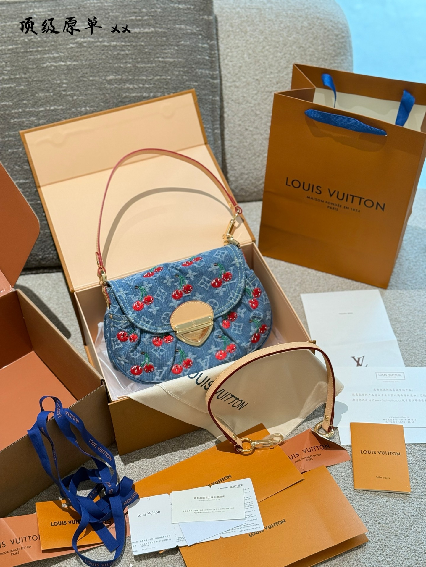 💰280 LV x村上隆 🍒sunset 谁还没拥有! 去年发售的丹宁sunset 火爆至今 今年的村上隆系列又发力了!谁能不喜欢🍒樱桃呀! 包型简洁大方,容量超好,两条肩带随意变化背法~ 这个夏天不能没有樱桃丹宁元宝包!25cm图片全套包装