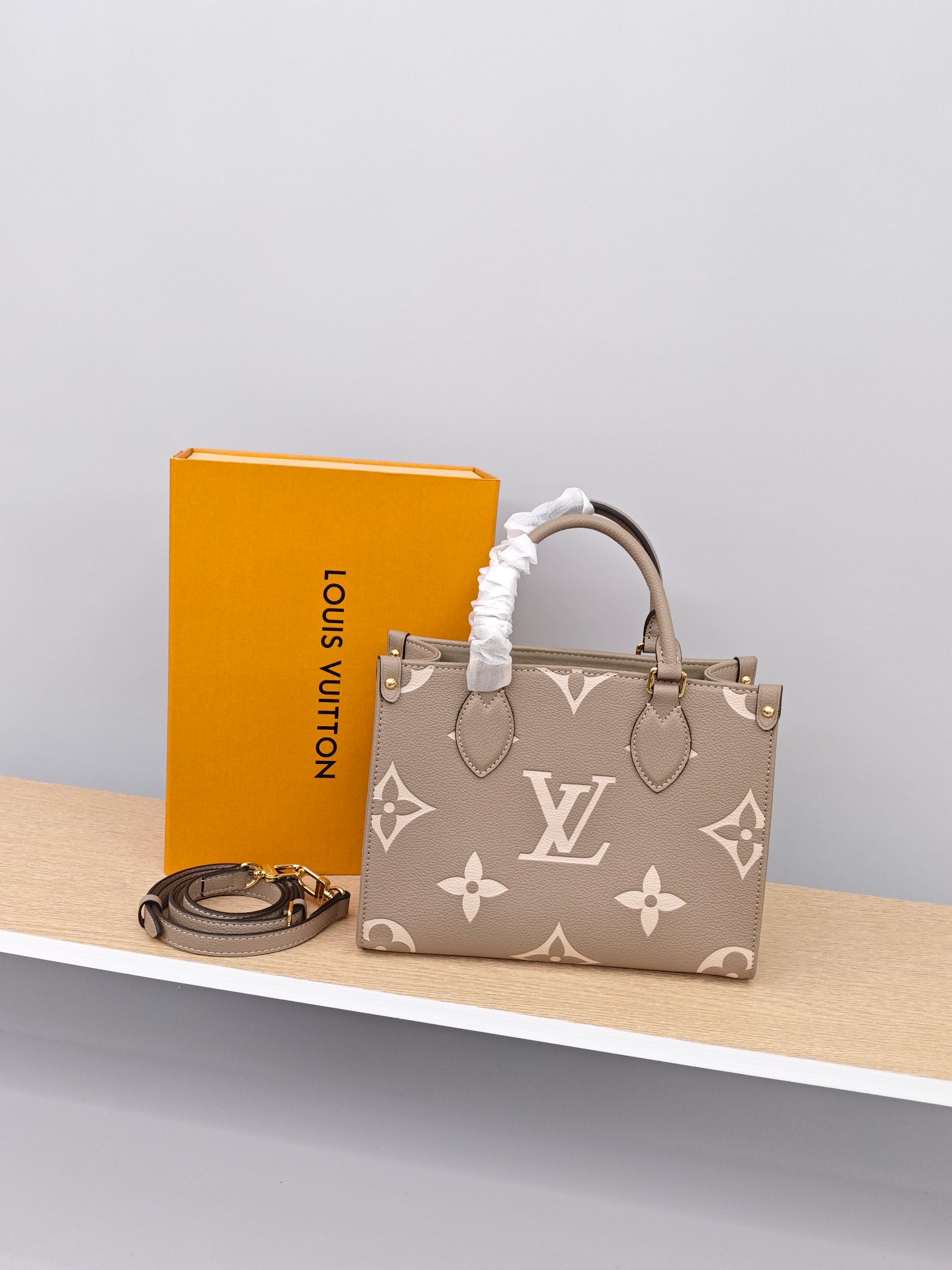 Lv onthego托特包💰280 《全新升级》 尺寸:25×19×11.5cm 特点:精致高级感,四季百搭。 方式:开放式开合,内置拉链口袋,内部空间宽敞,可放下手机充电宝平板ipad等日常随身物品,搭配可拆卸背带,可手提/斜挎背。